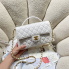 CC 25P Medium Flap Bag 25cm Top Handle Cream Calfskin Gold Hardware