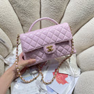 CC 25P Medium Flap Bag 25cm Top Handle Pink Calfskin Gold Hardware