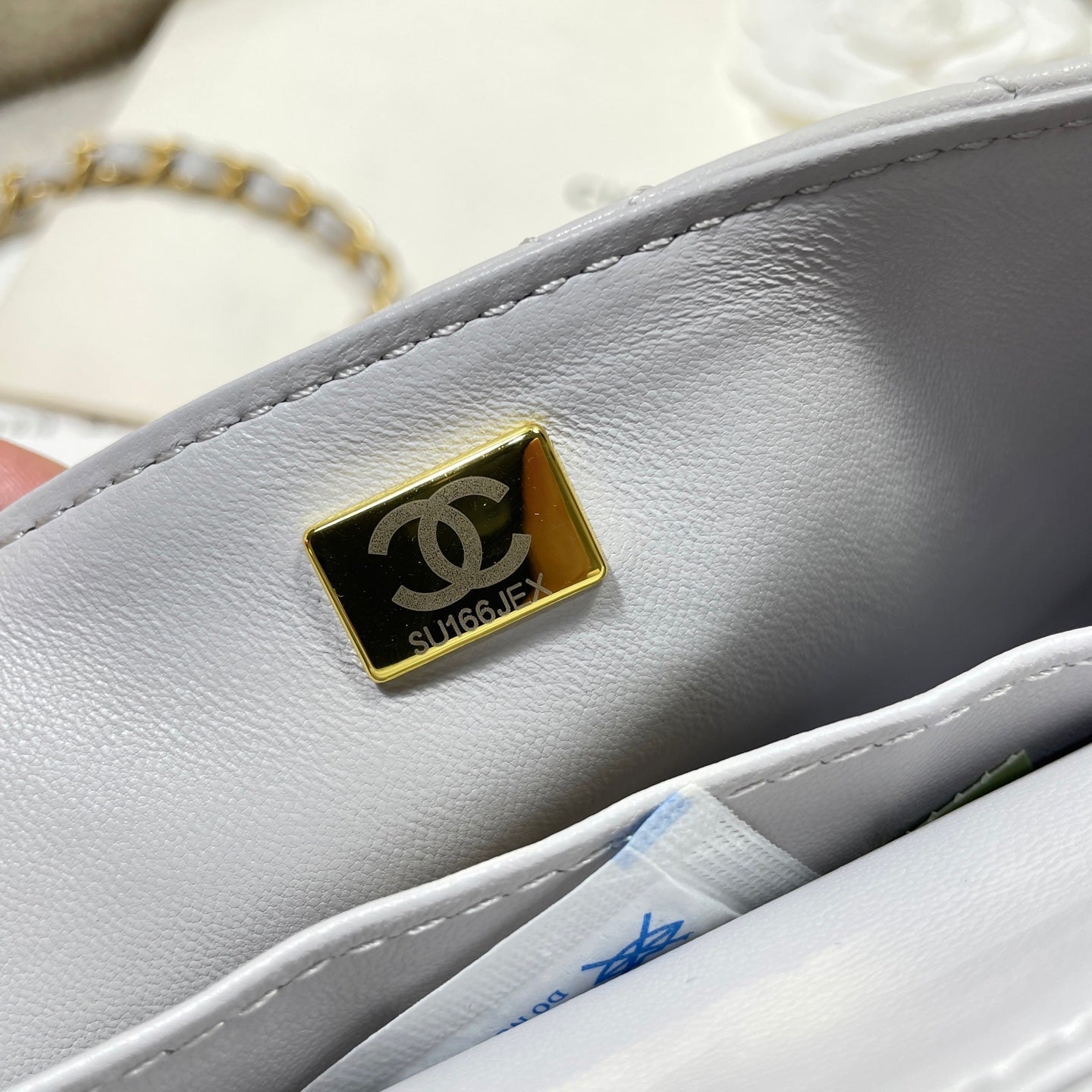 CC 25P Mini Flap Bag 20cm Top Handle Grey Calfskin Gold Hardware