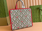 Gucci Bunny Print Tote Bag Red Beige Canvas 231228