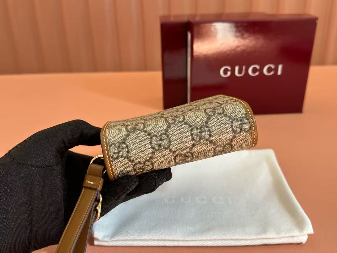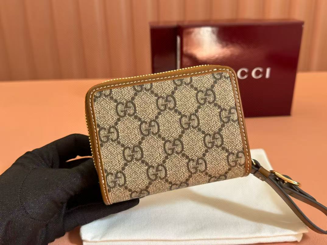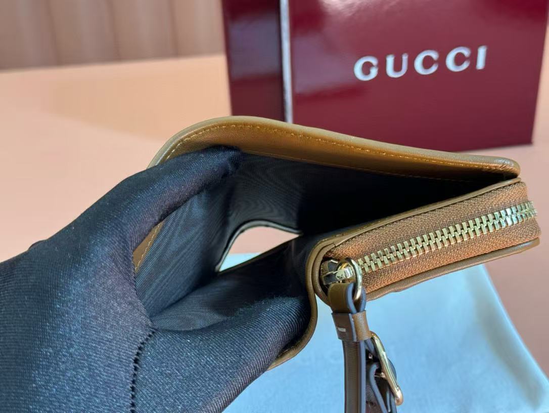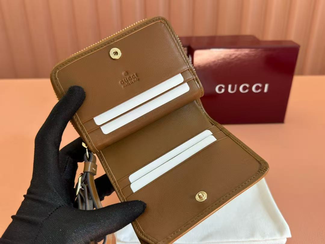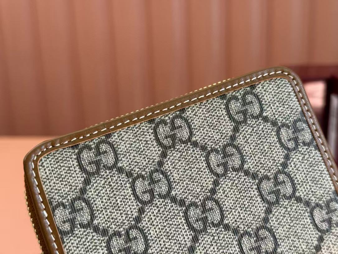 Gucci Emblem 11 Wallet Ebony Brown Leather Fabric