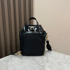MINI BACKPACK 18 IN BLACK RE-NYLON AND GLOSSY CALFSKIN GOLD HARDWARE