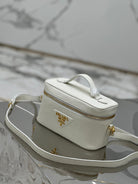 VANITY CASE 18 IN WHITE GRAINED CALFSKIN GOLD HARDWARE