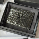 YSL Card Holder 10cm Wallet Full Black Crocodile Leather 240552
