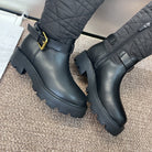 CD Ankle punk-inspired women's boots black cowhide with nylon cloth