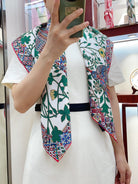 Le Jaguar Et Le Colibri Shawl 90 CM In Green Colorful Silk Twill 274208