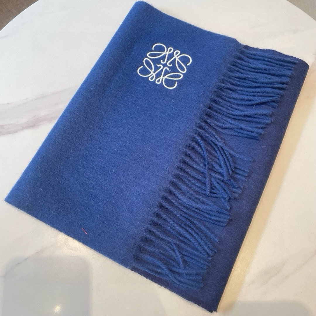 SCARF 180 CM IN COBALT BLUE WOOL AND CASHMERE 415202