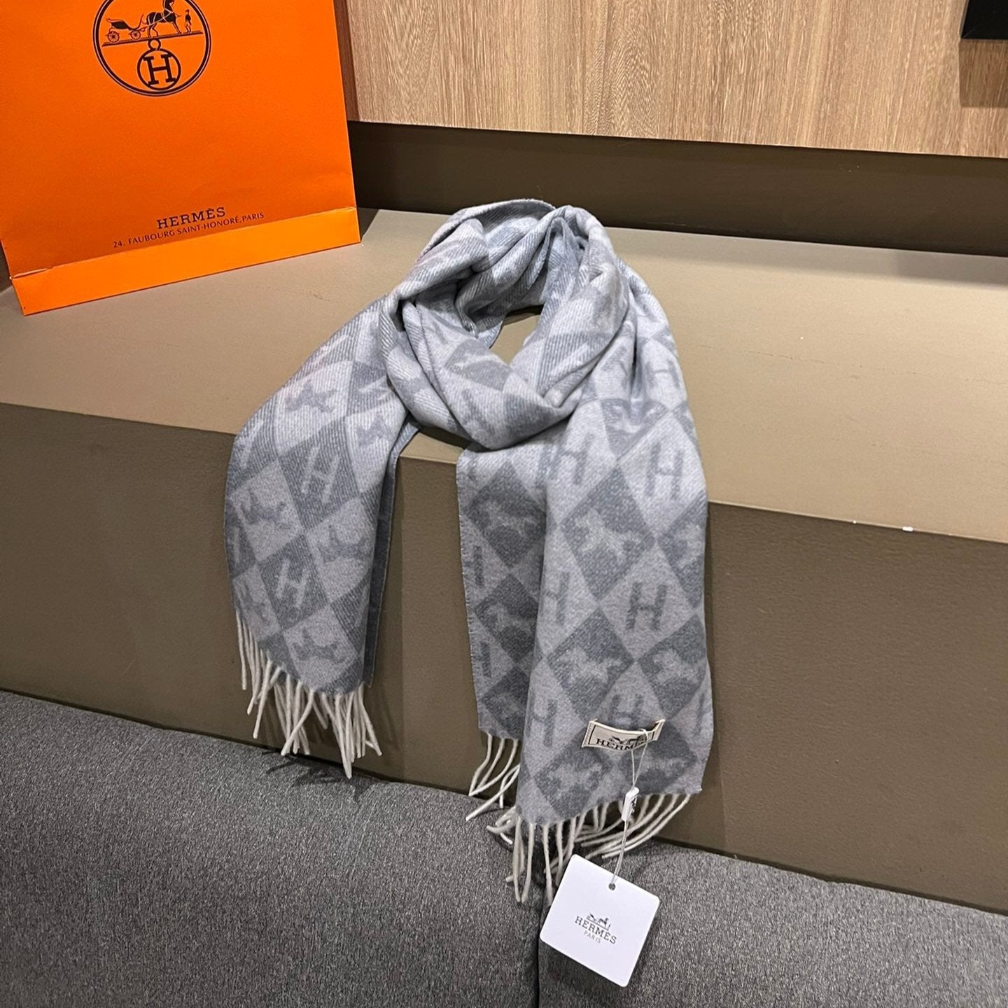 Scarf Cashmere 180 CM In Grey Blue Fine Wool 290424