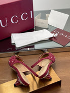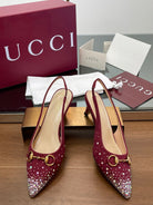 GG Horsebit Slingback 45MM Red Ebony Monogram Canvas Point Toe Crystal-Embellished