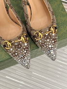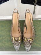 GG Horsebit Slingback 85MM Beige Ebony Monogram Canvas Point Toe Crystal-Embellished