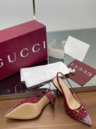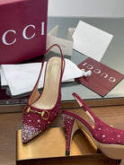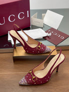 GG Horsebit Slingback 85MM Red Ebony Monogram Canvas Point Toe Crystal-Embellished