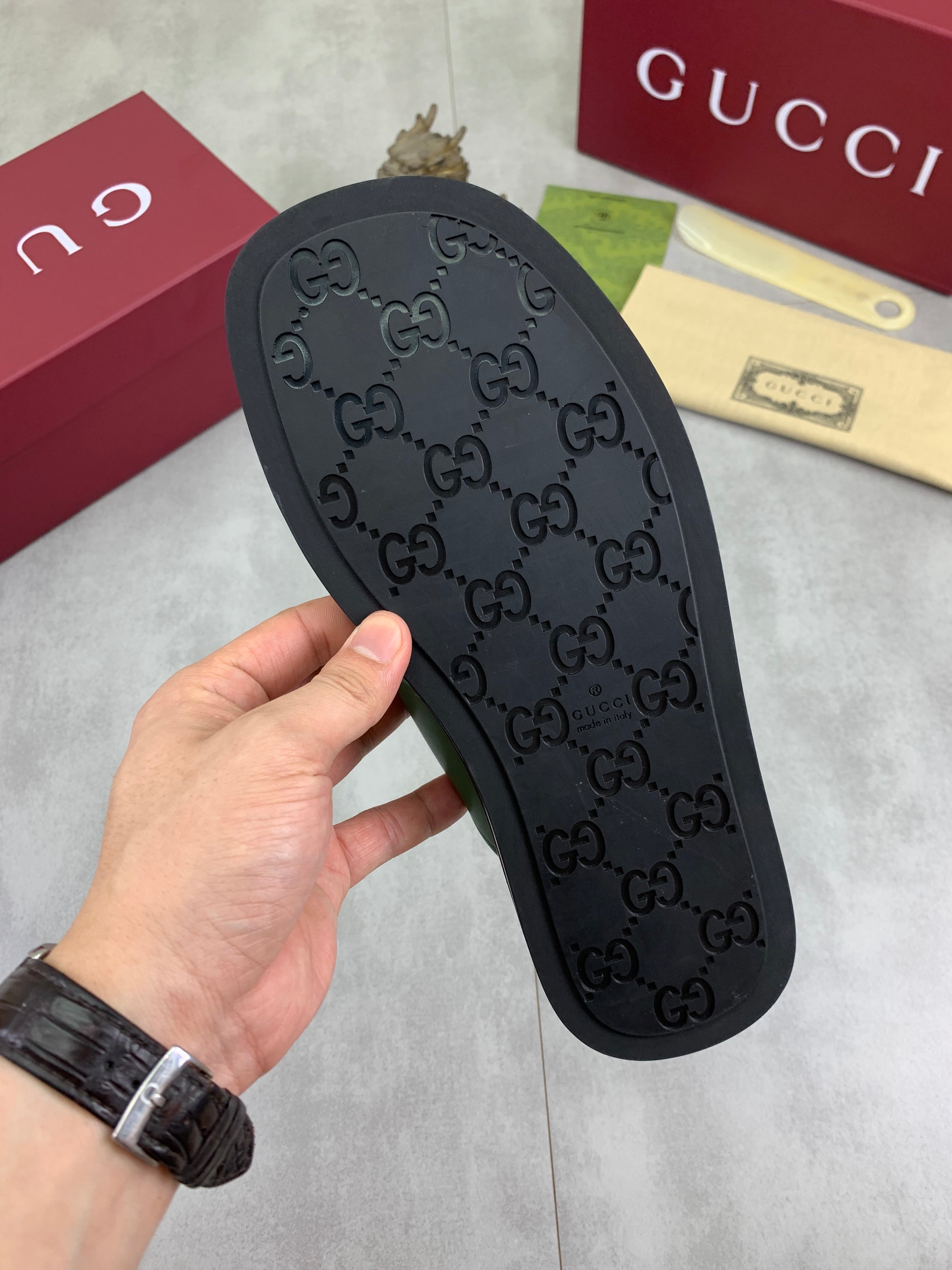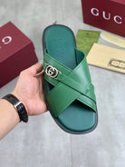 GG Men's 25 Sandals Slide Green Cowhide 738472