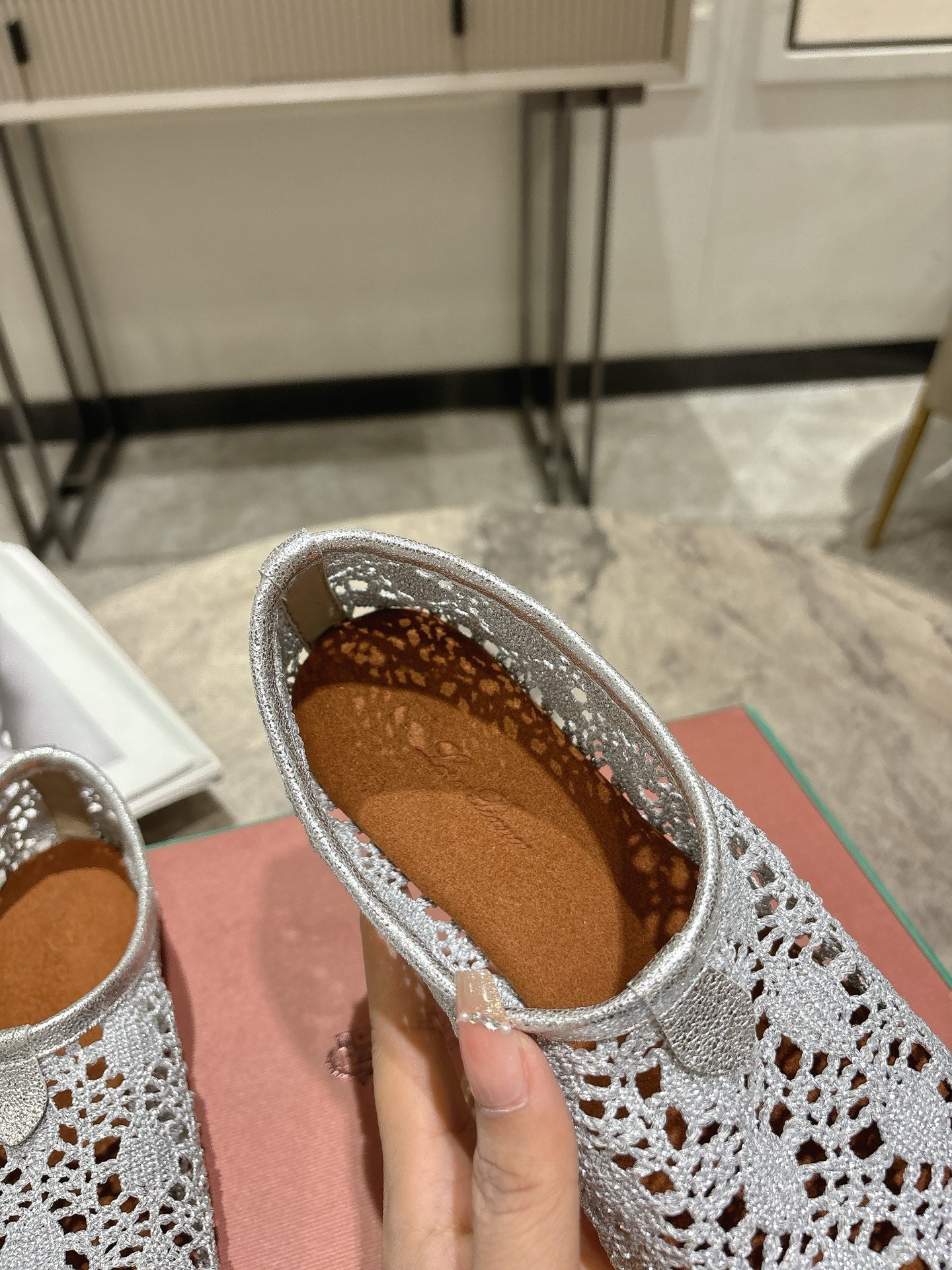 LP hollow knit ballet flats gray fabric 379028
