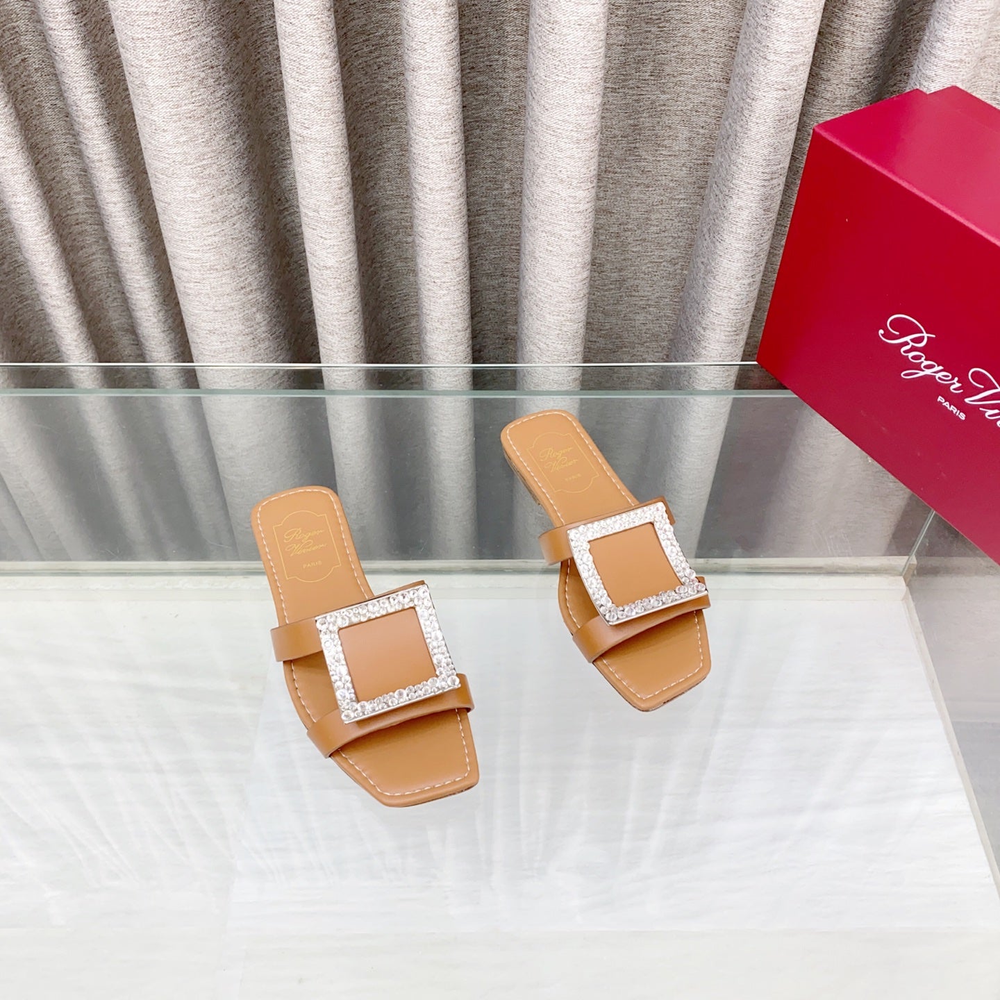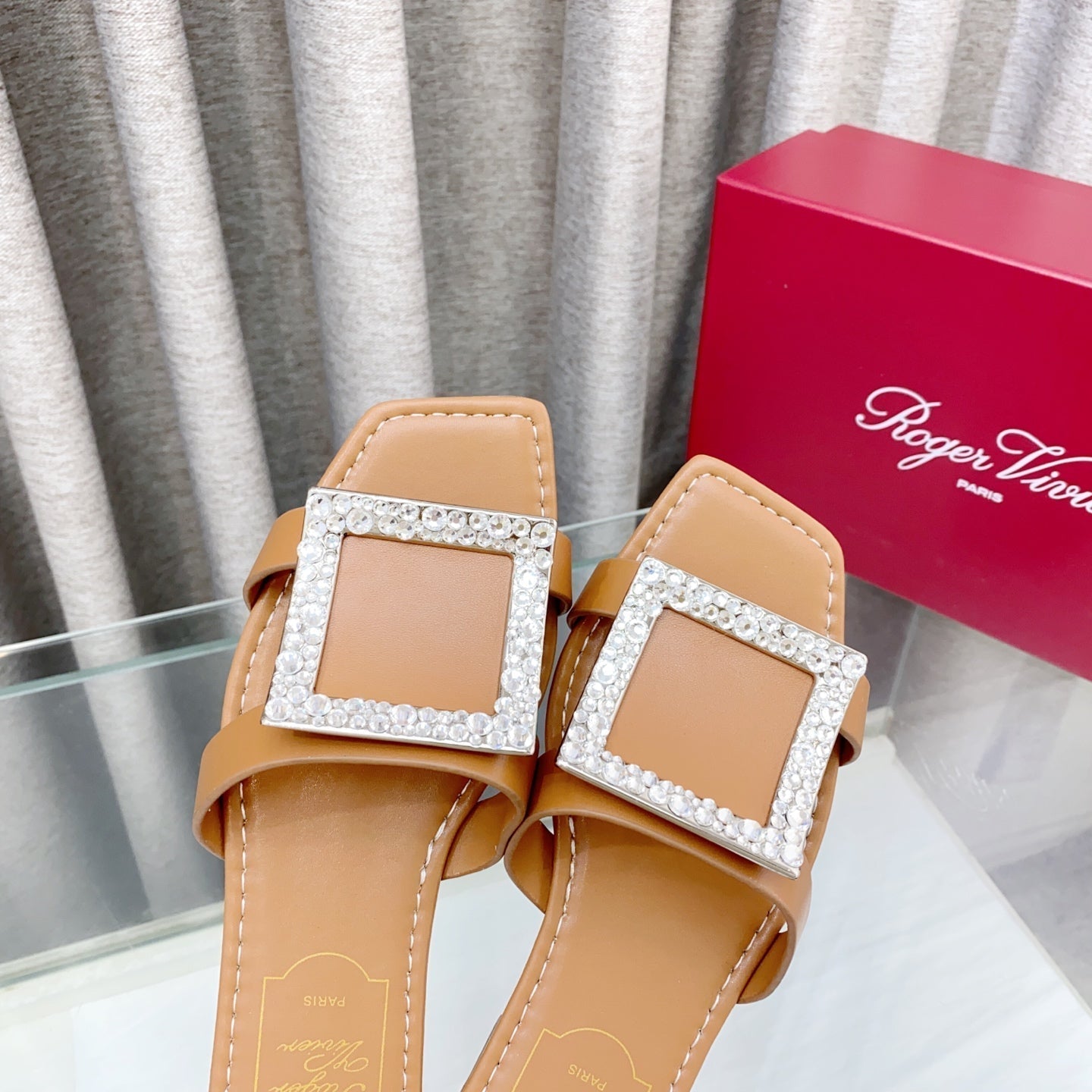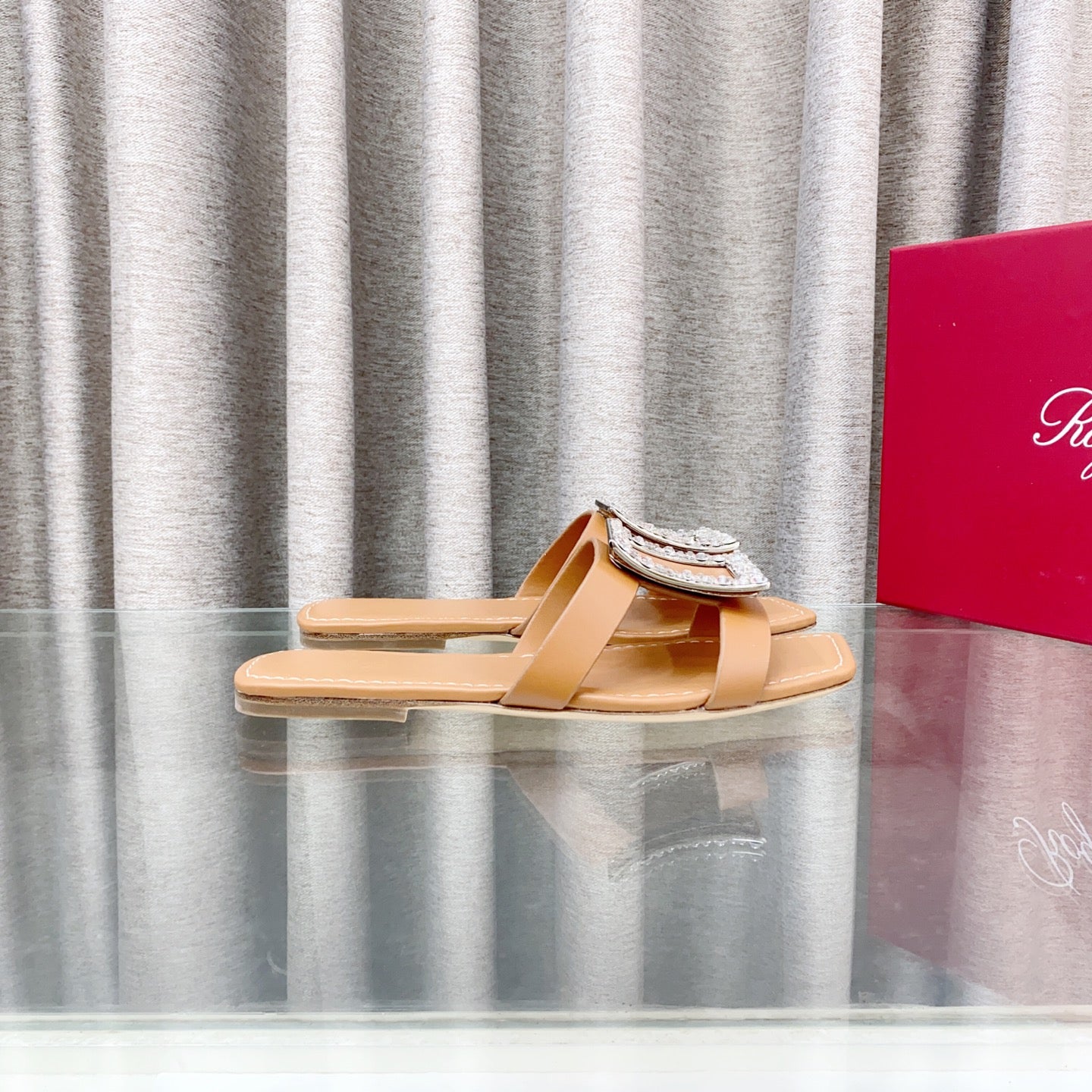 Viv 25 Diamond Flat Slippers Brown Cowhide 283035