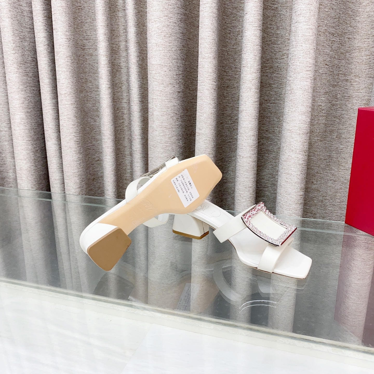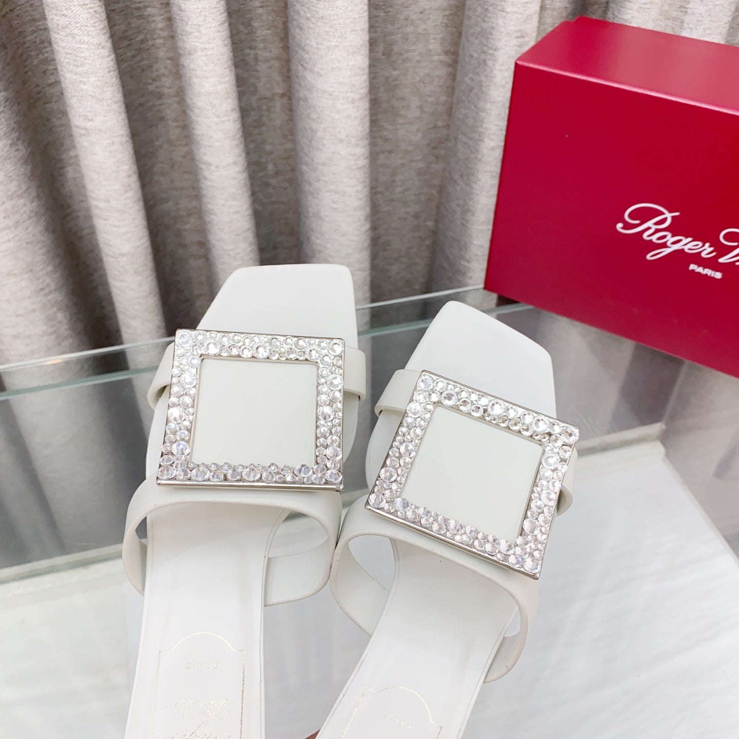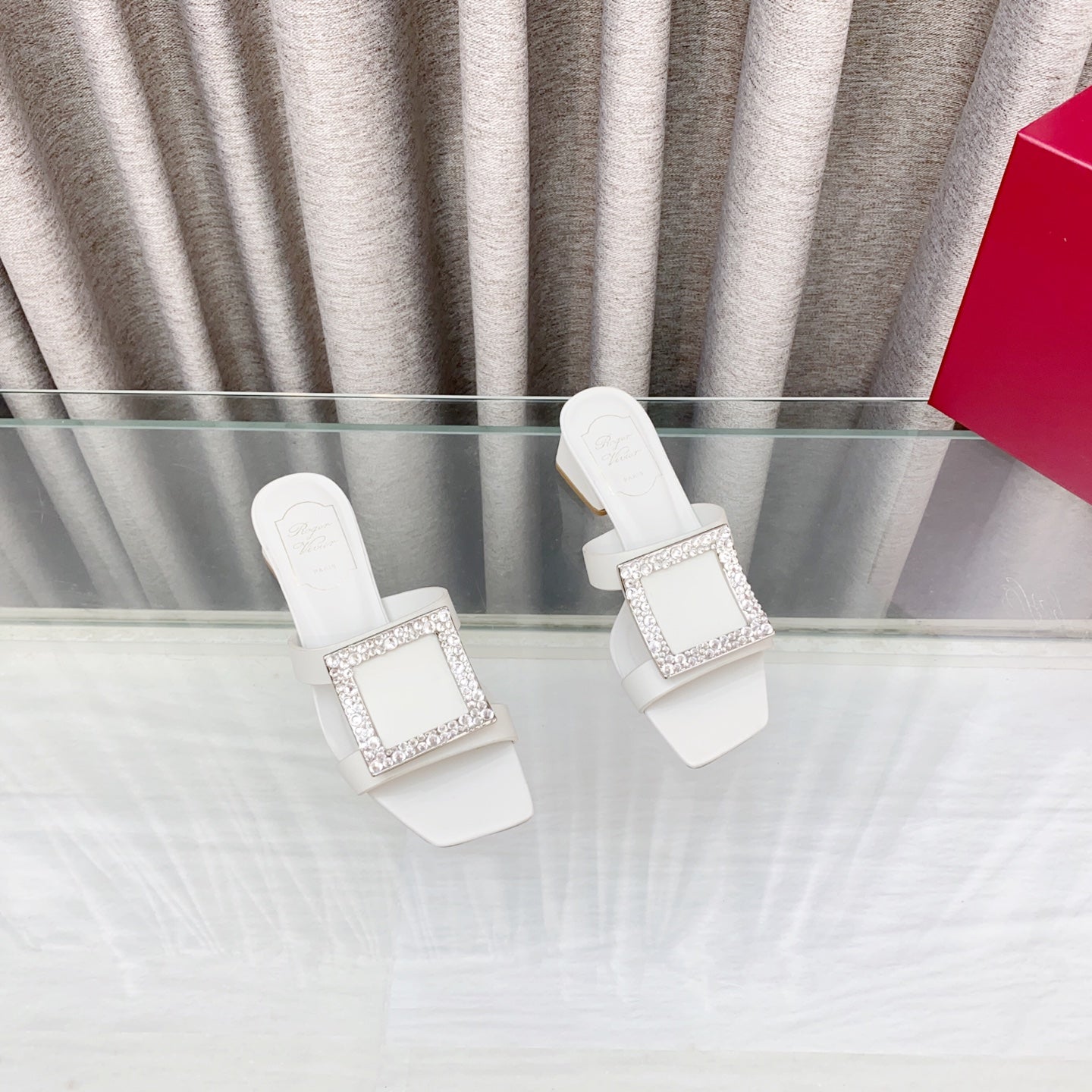 Viv 25 Diamond Mid Heel Slides White Cowhide 283040