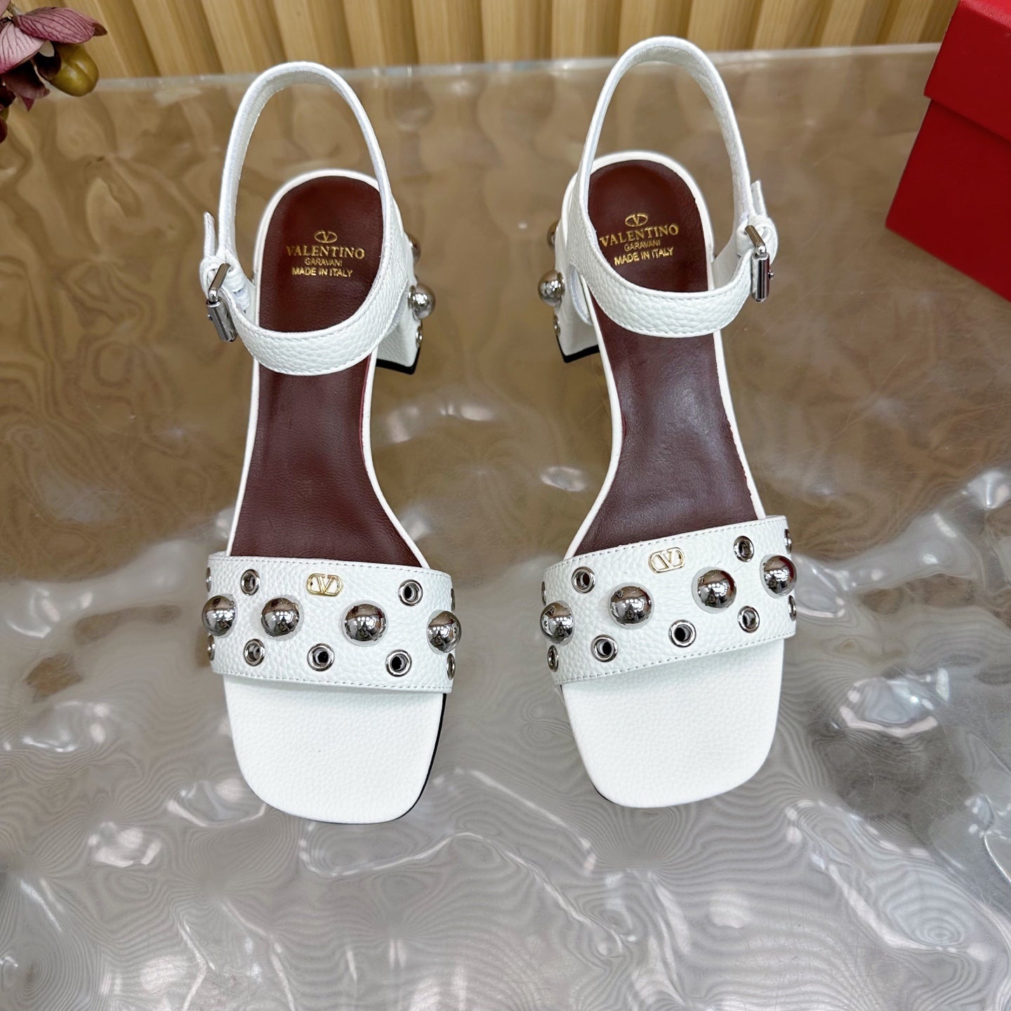 VT 25 Rivet Steel Beads Slingback White Lambskin 325204