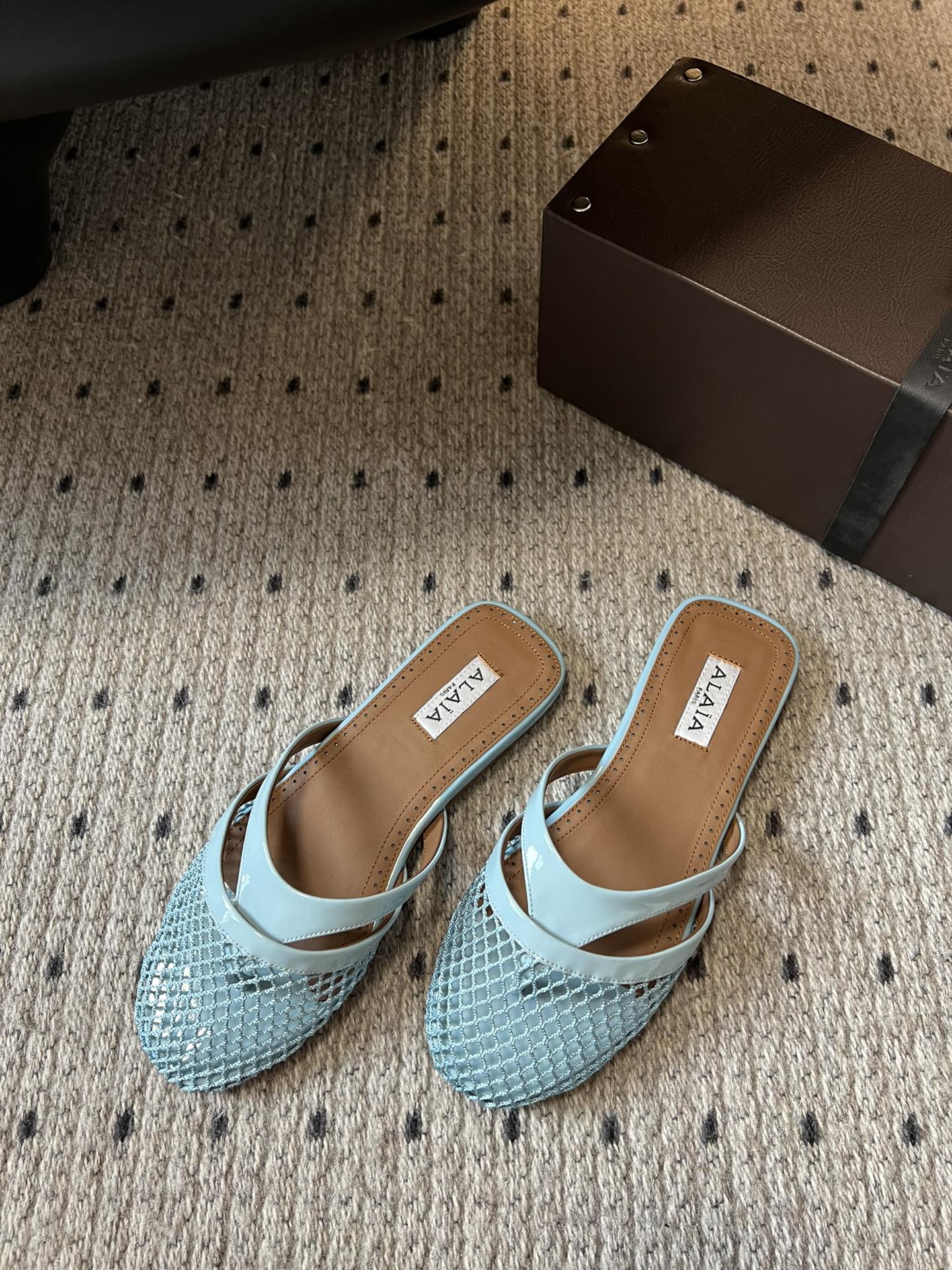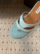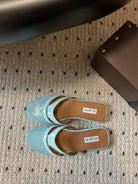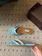 Alaia 25 Infradito Fishnet Flat Mules Lagoon Green Lampskin 303711