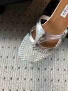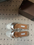 Alaia 25 Infradito Fishnet Flat Mules Silver Lampskin 303712