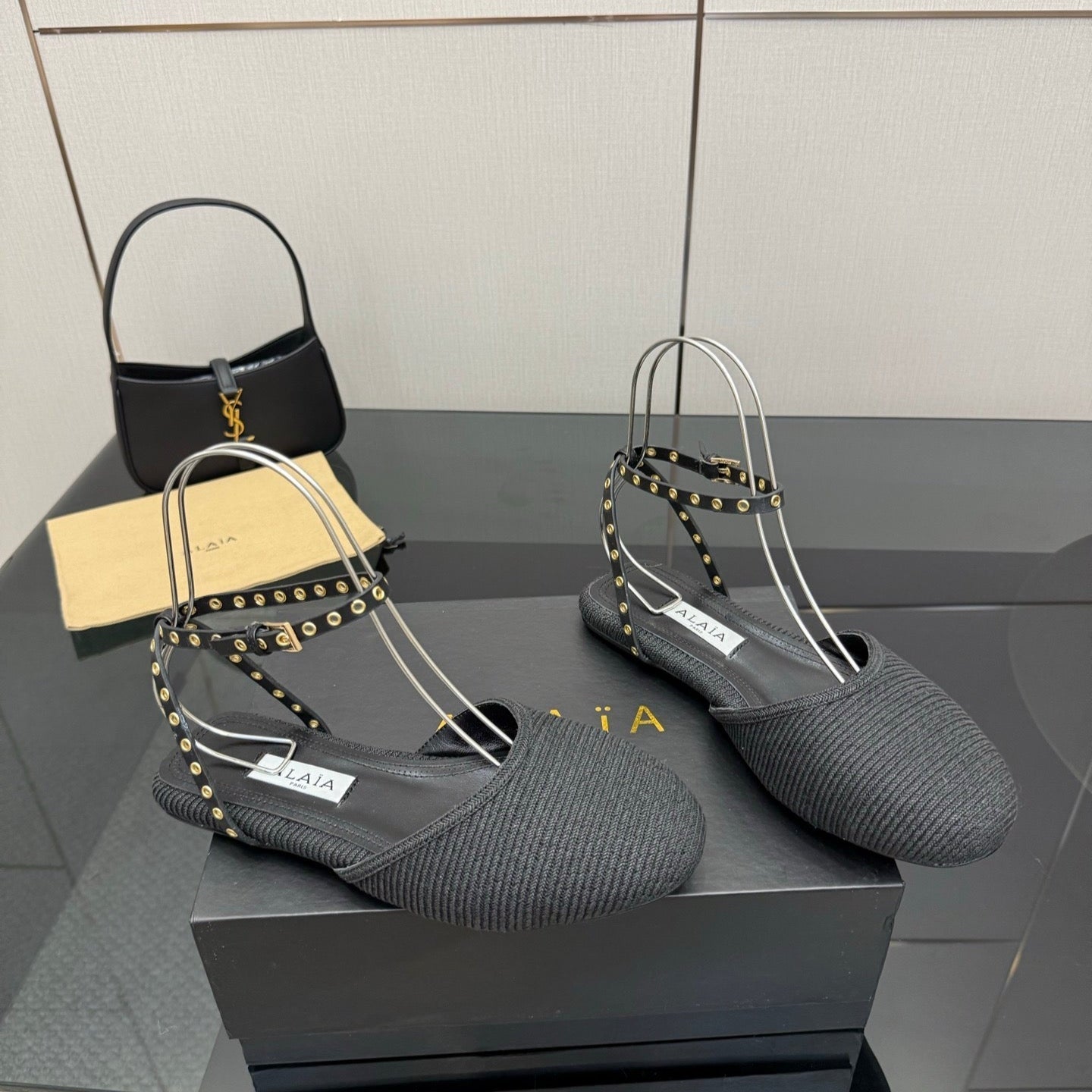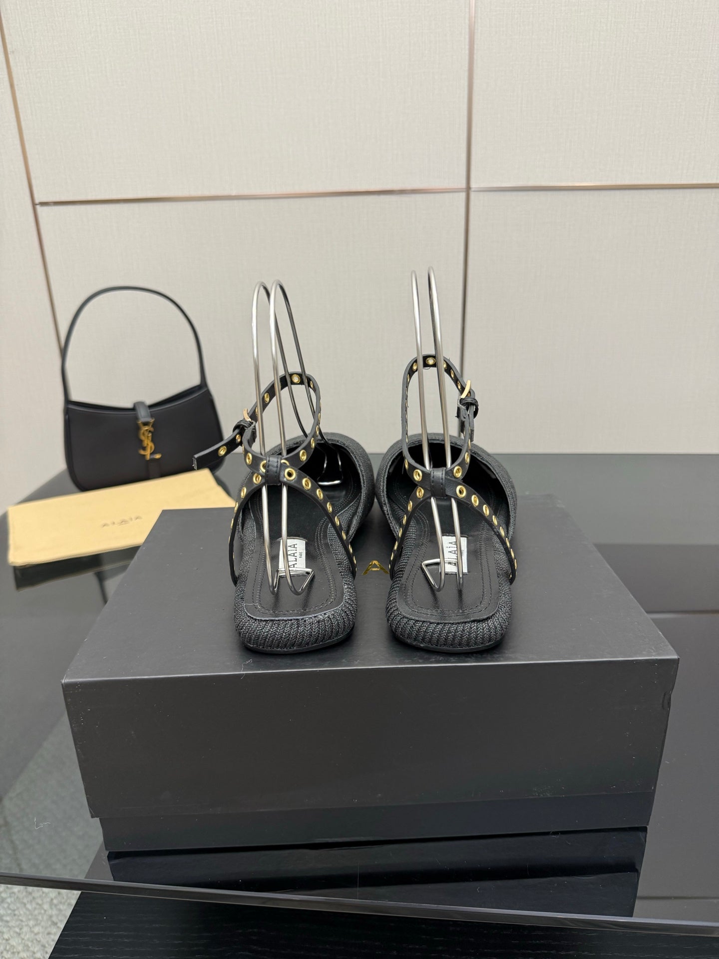 ALAIA flat slippers black sheepskin 389628