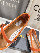 ALAIA MARY JANE FLATS WHITE MIX ORANGE WOVEN CALFSKIN PATTERN