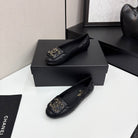 CC 25 Ballet Flat Large Logo Black Quilted Calfskin