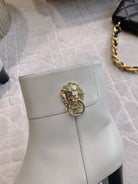 CC 25 Chunky High-heeled Ankle Boots White Calfskin 516658