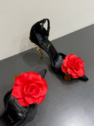 CC 25 Flower Rose Pumps Black Silk 337164