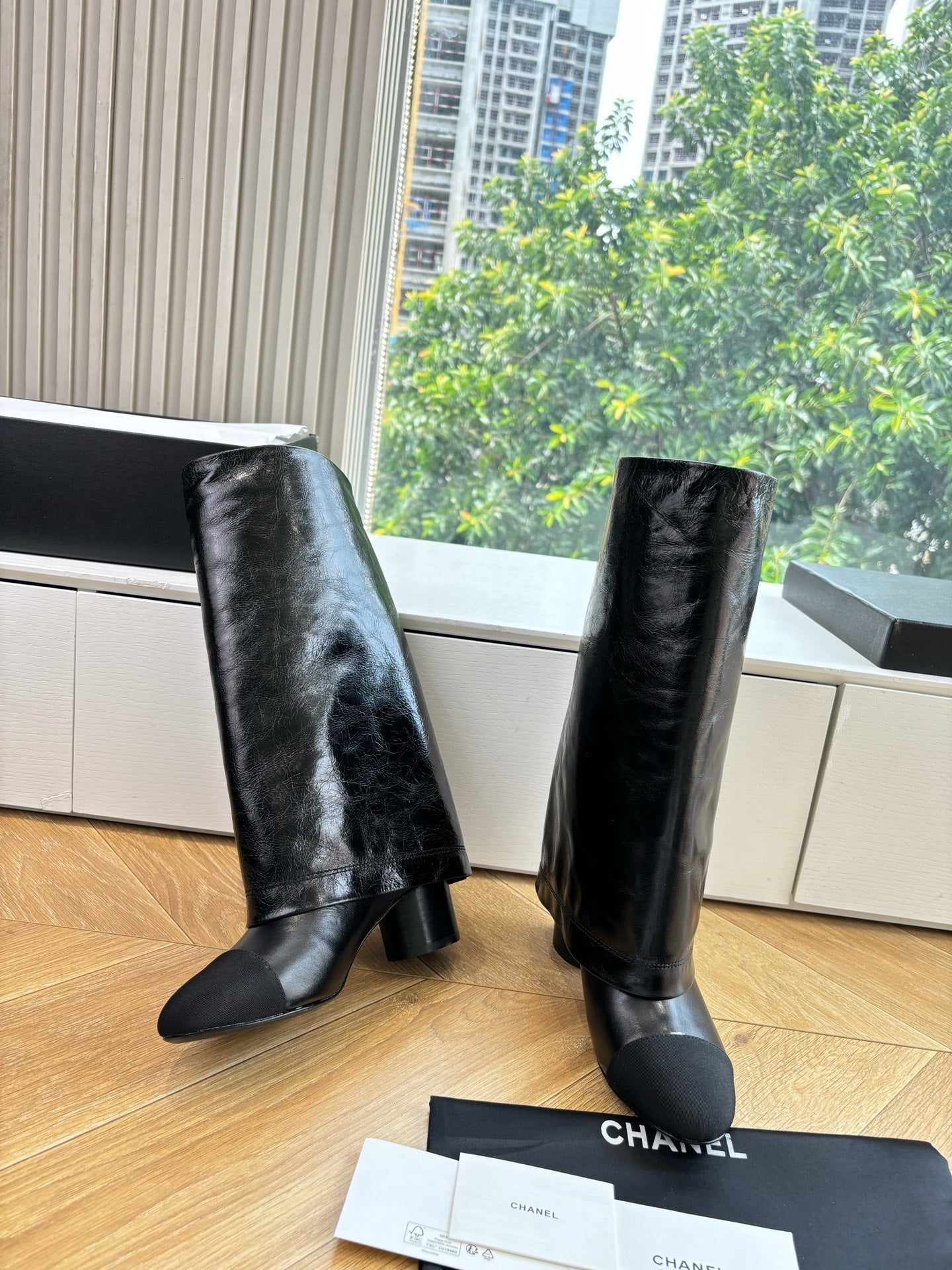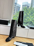 CC 25 High Boot Black Aged Calfskin Grosgrain 430338