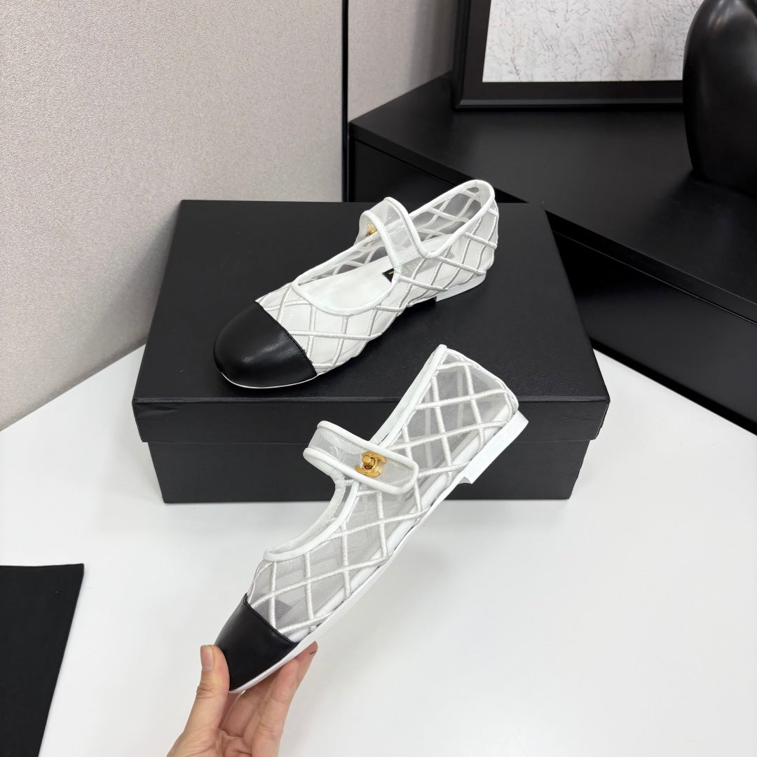 CC 25 Mary Jane White Mesh Black Calfskin