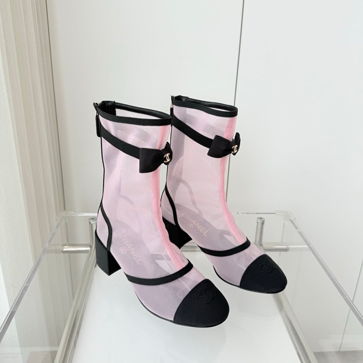 CC 25 Short Boot Pink Black Mesh Fabric 411467