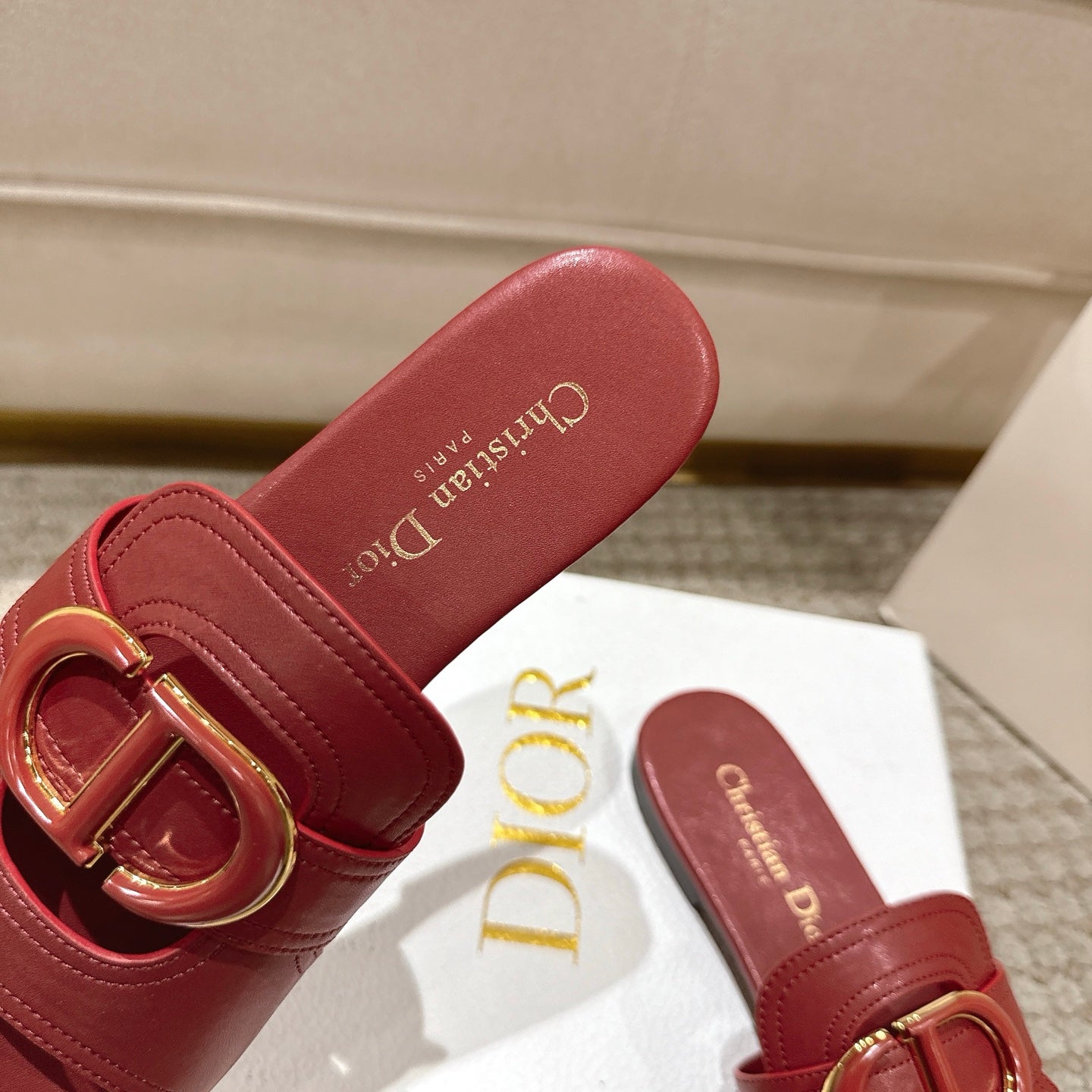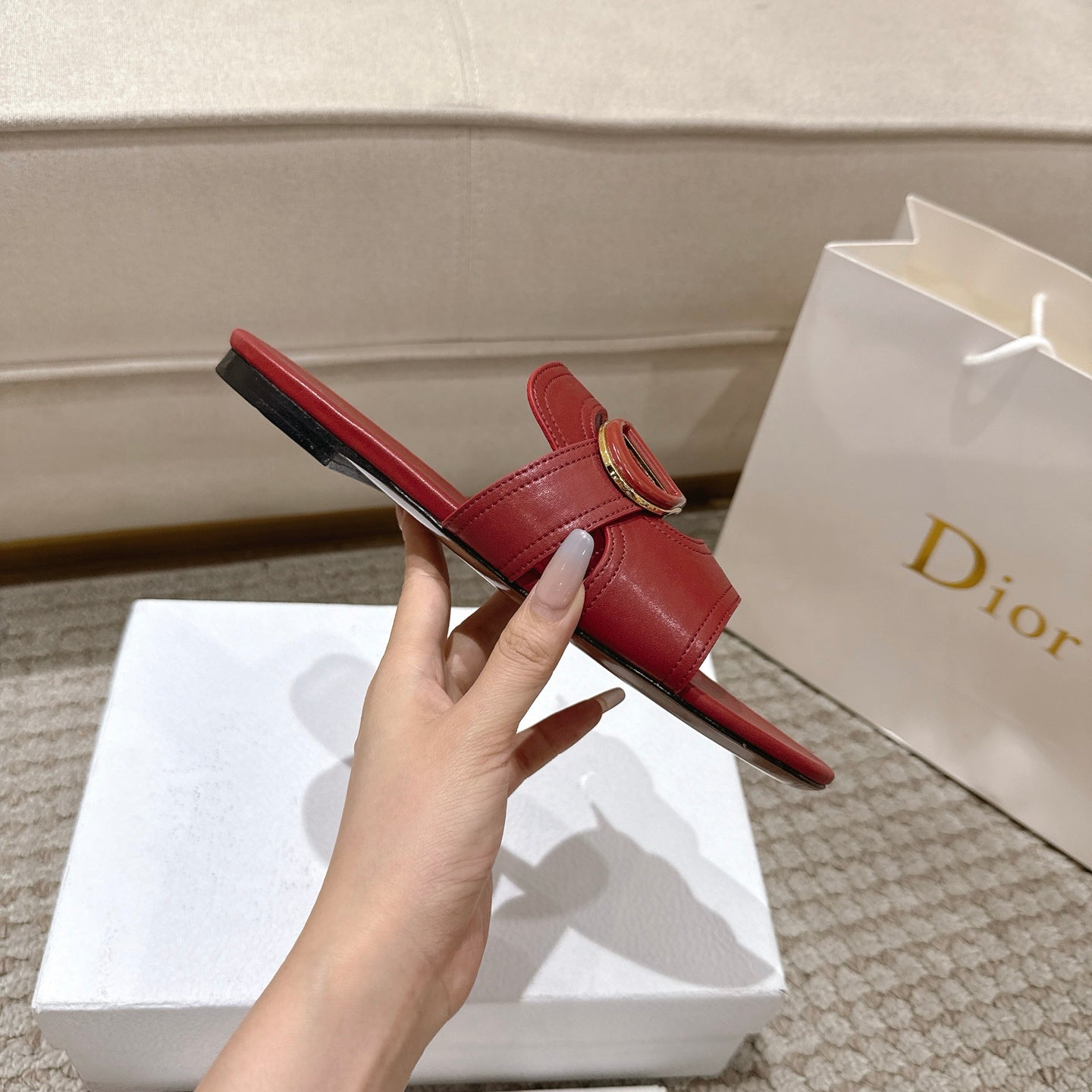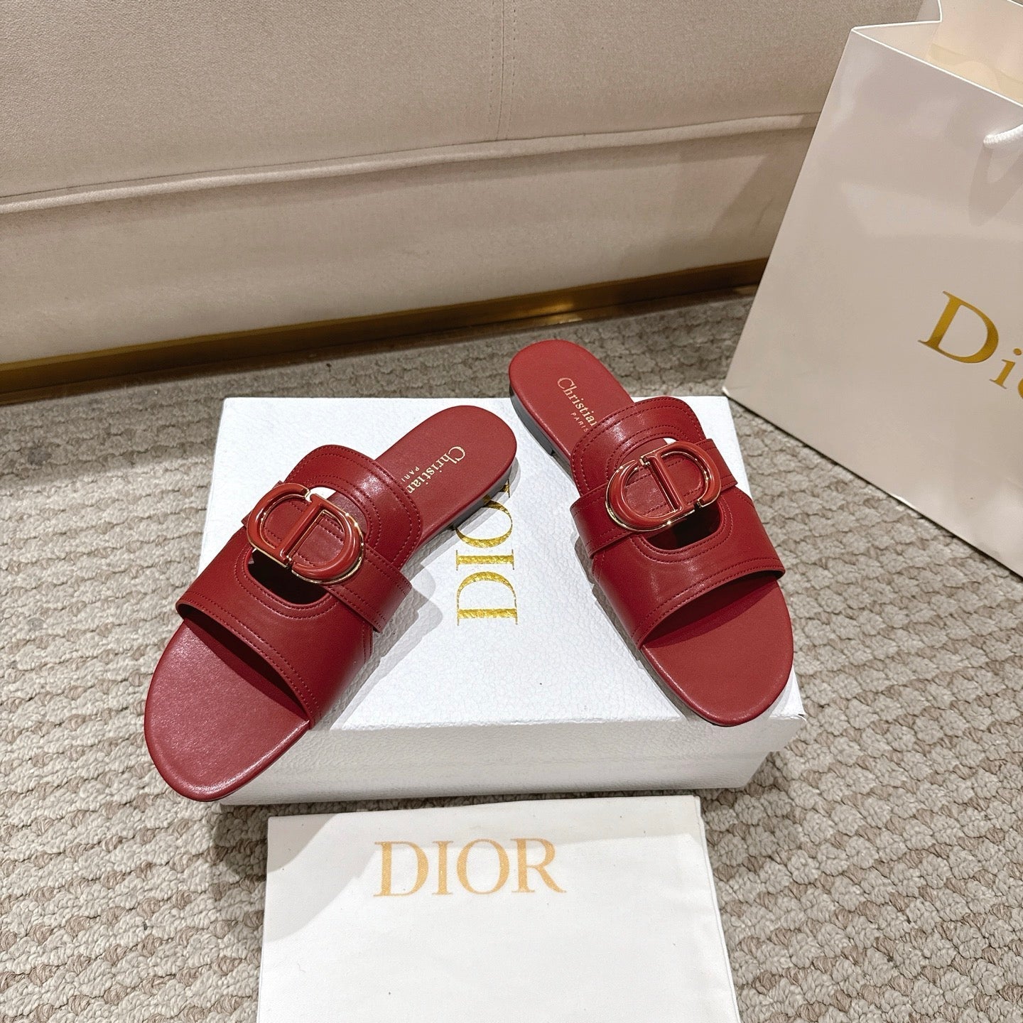 CD 25 letter hollow flat sandals red calfskin 396104