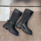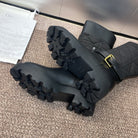 CD Ankle punk-inspired women's boots black cowhide with nylon cloth