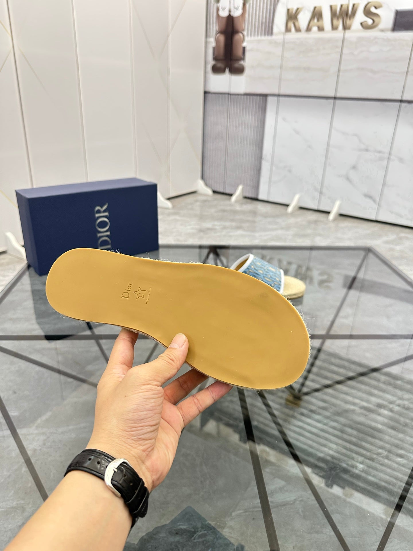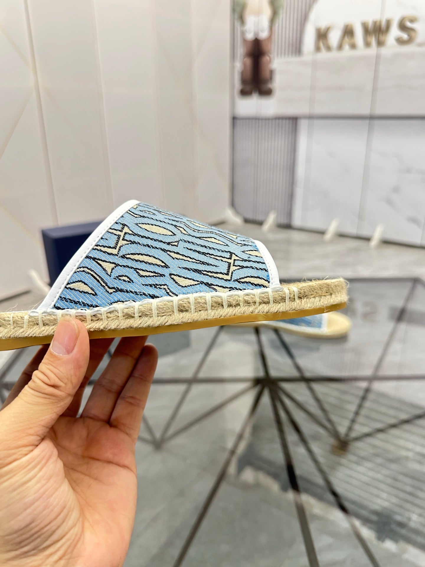CD Espadrille Slide Blue Printed Fabric 639438