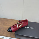 Chanel 25 Mary Jane Ankle Chain Ballet Flat Burgundy black Cowhide 465596