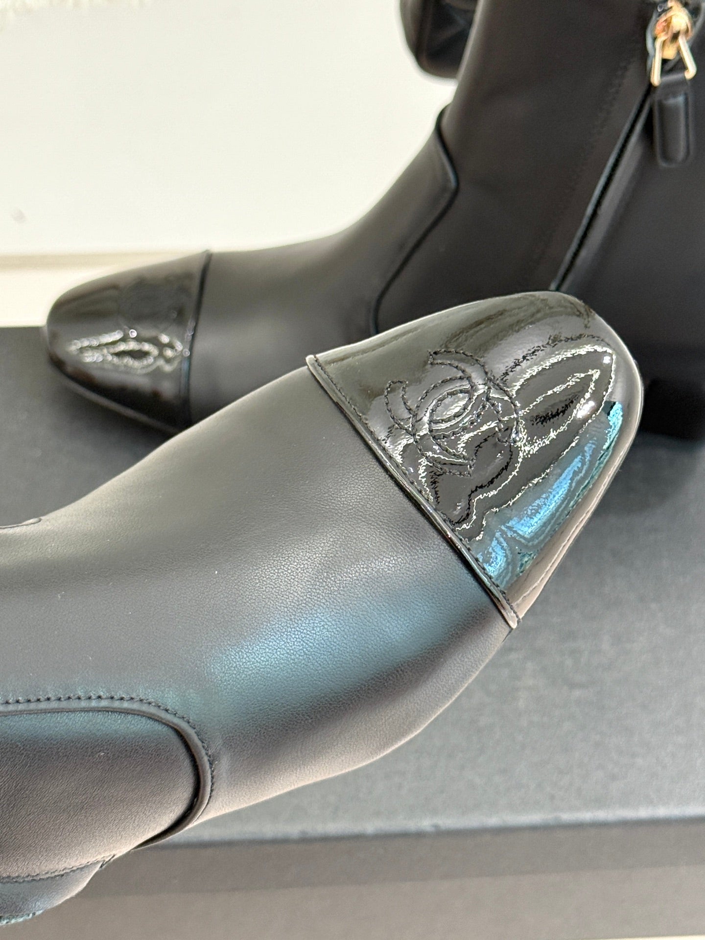 Chanel Double C Colorblock Heel Boot Black Sheepskin 465416