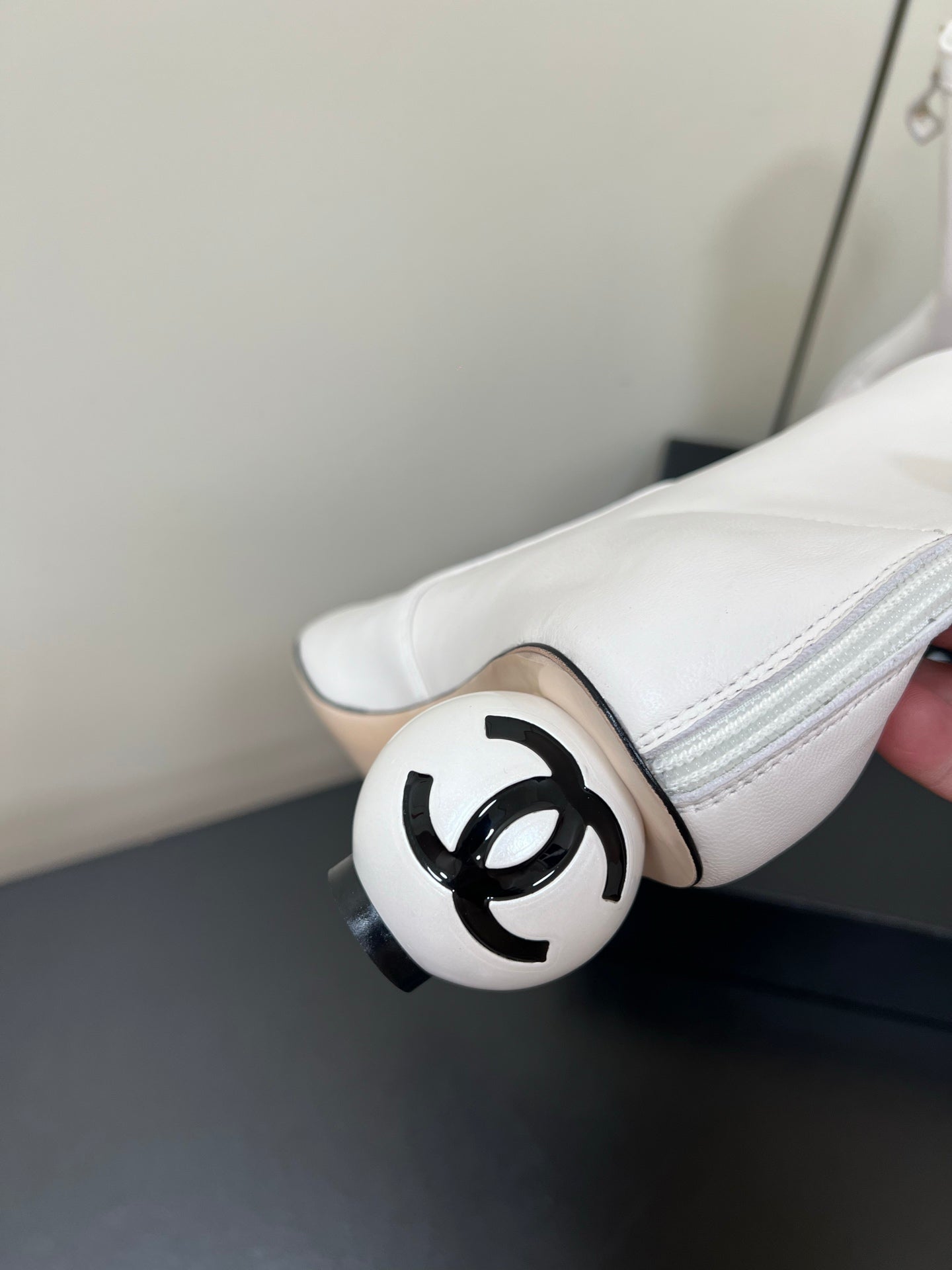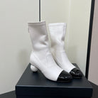 Chanel Double C Giant Pearl Heel Stretch Boots White Sheepskin 441706
