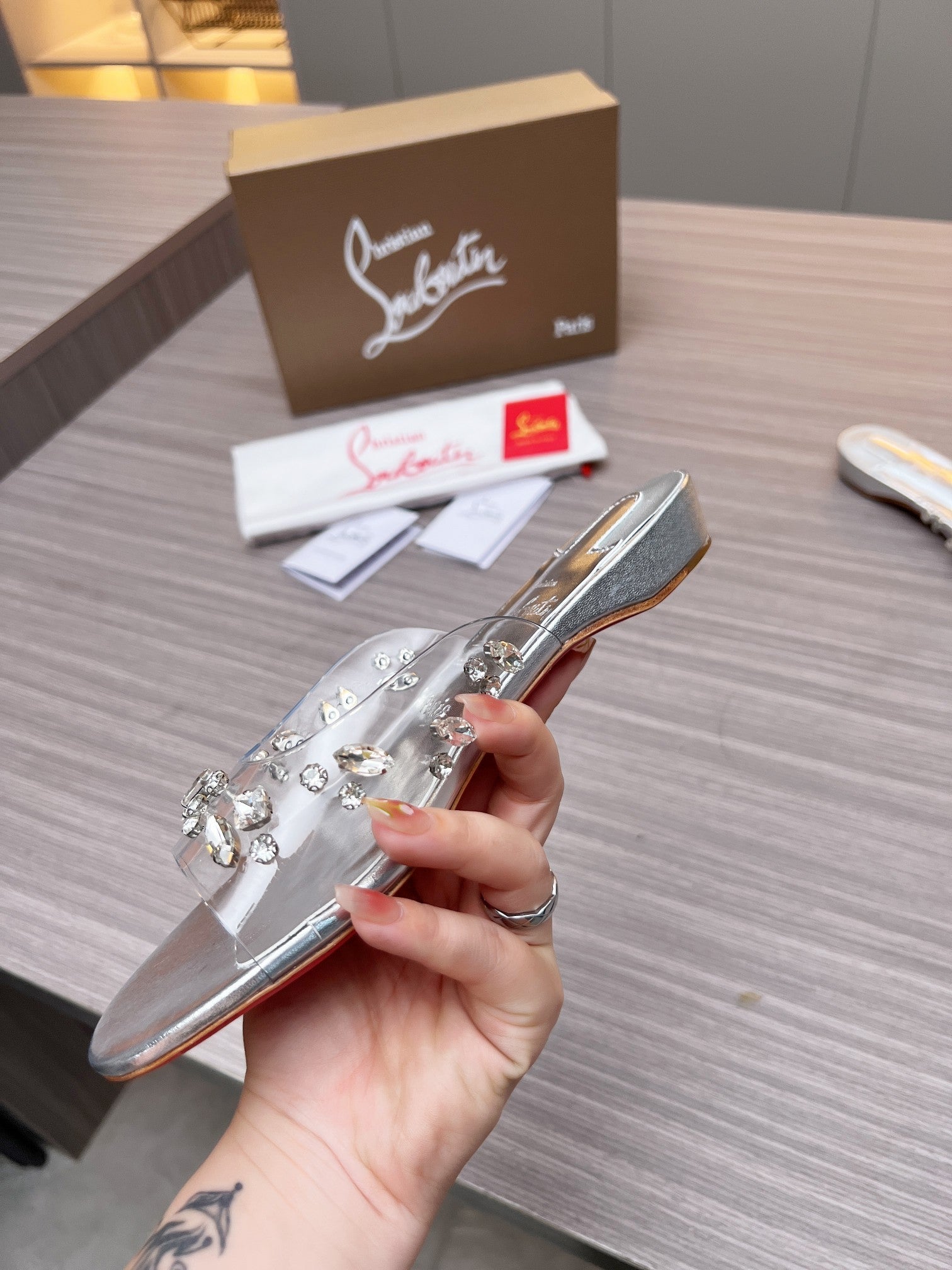 CL Slippers Silver PVC and Iridescent Nappa Leather 251047