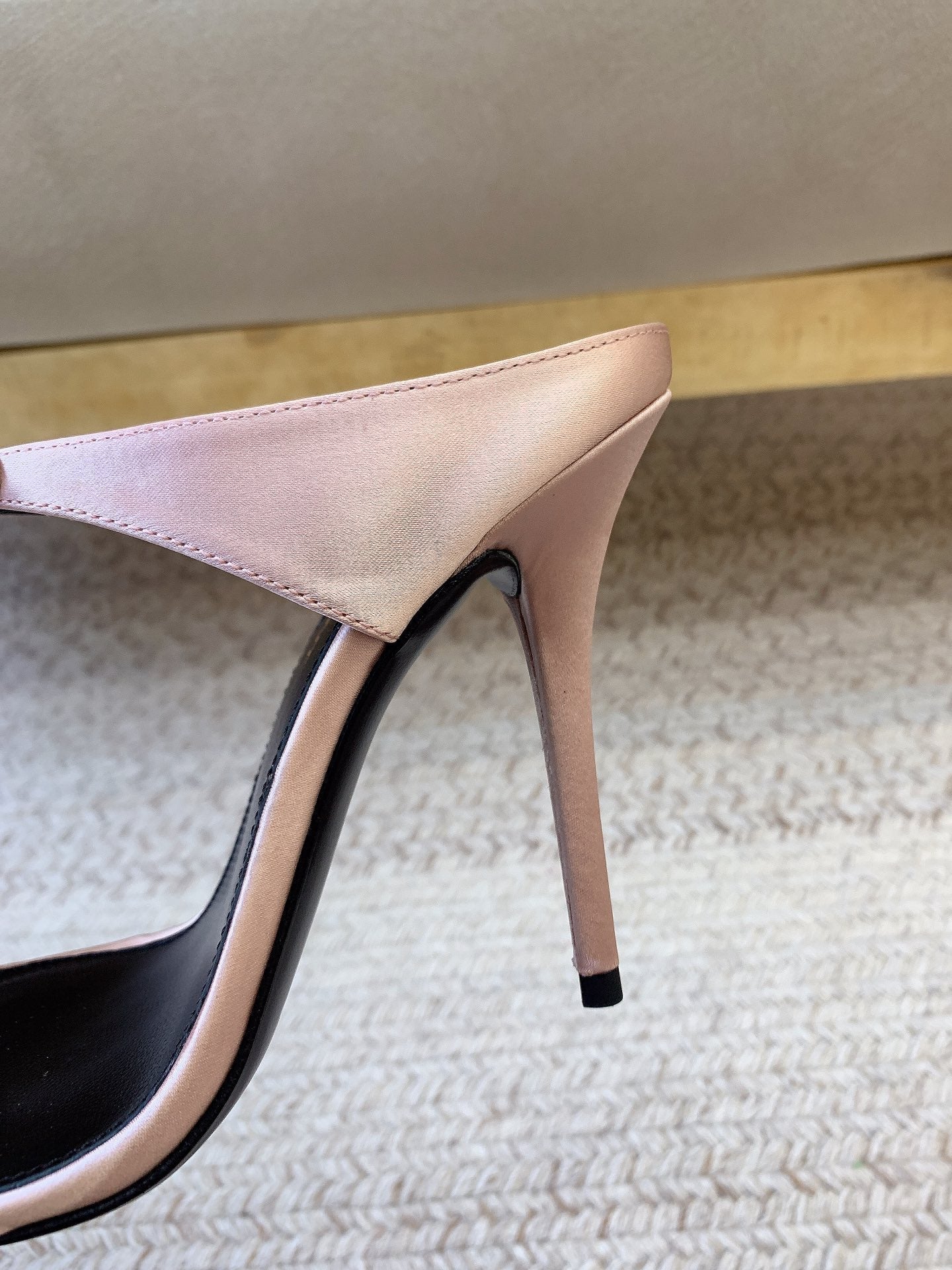 GAP CRYSTAL-BUCKLE SLIDE SANDALS IN LIGHT PINK SILK