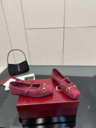 GC 25 Horsebit Ballet Flat Dark Red Monogram Suede
