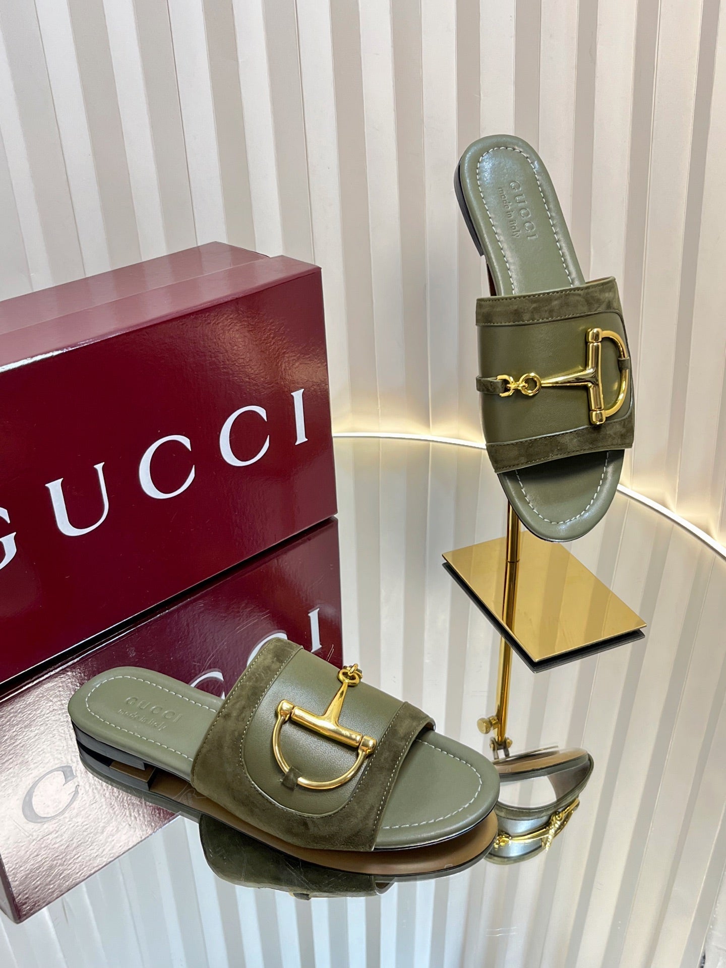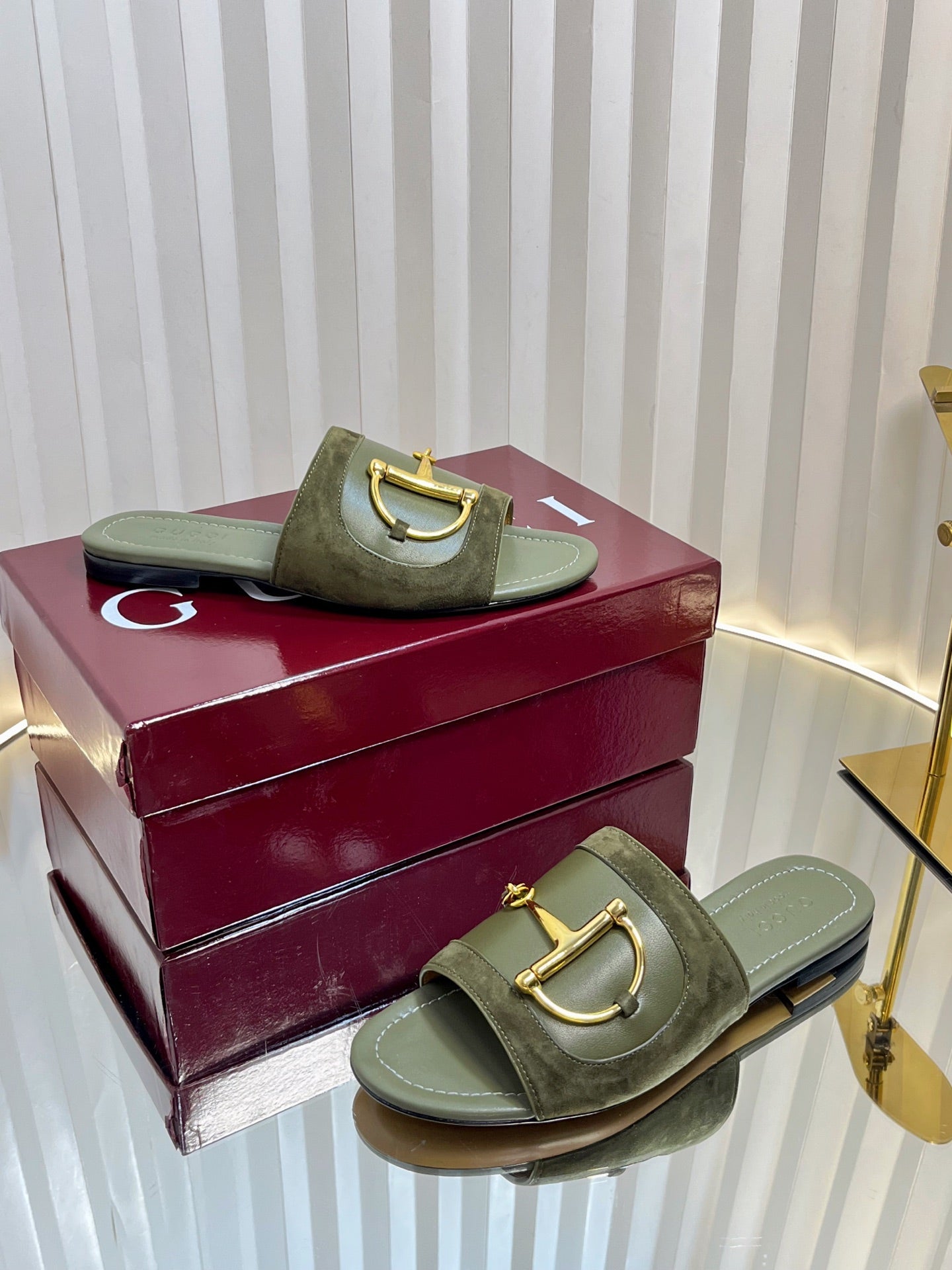 GC 25 Horsebit Sandals 10mm Dark Green Suede Sheepskin 294651