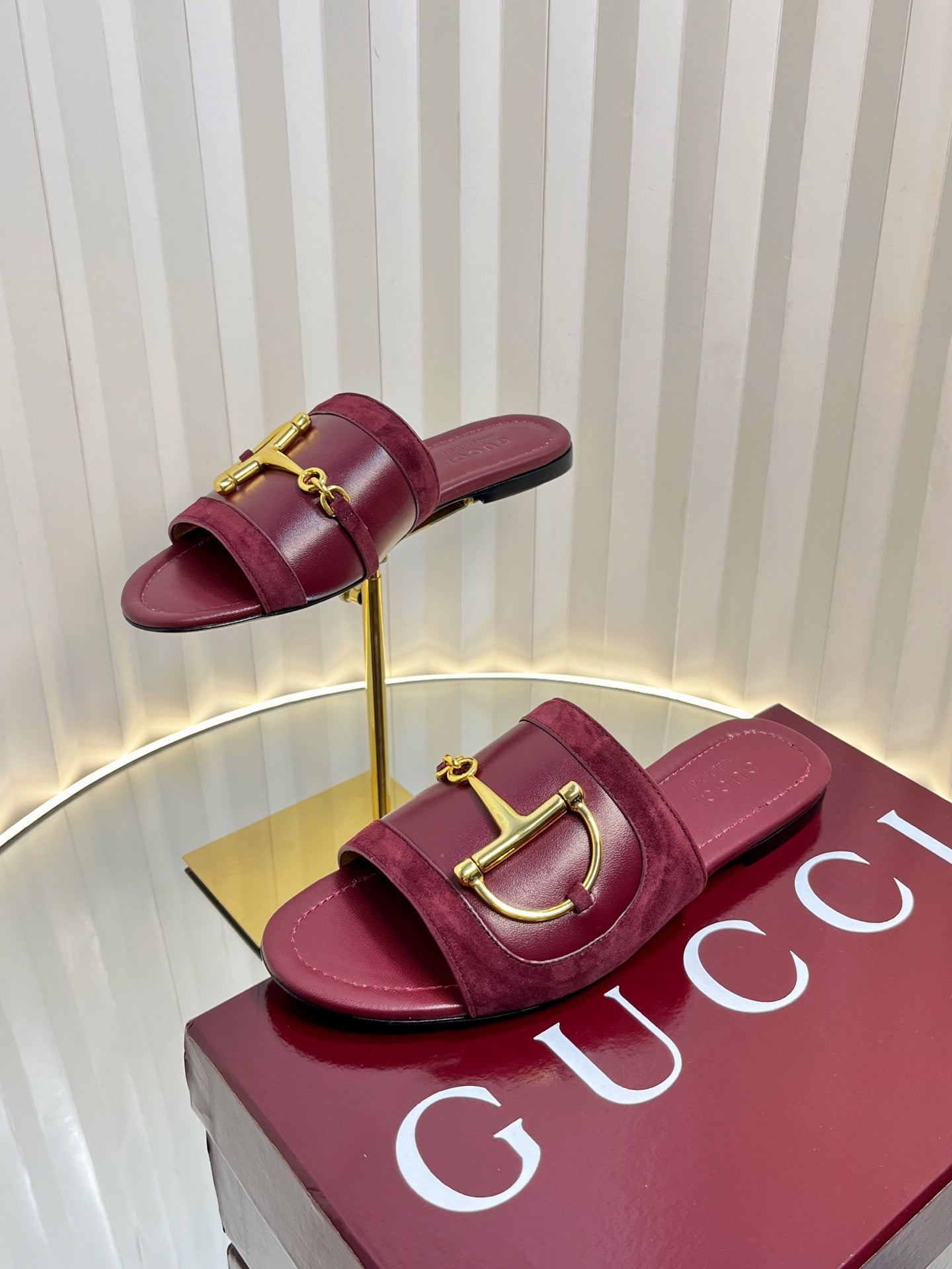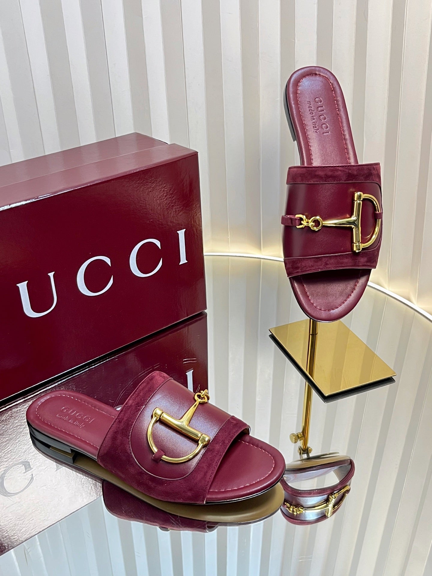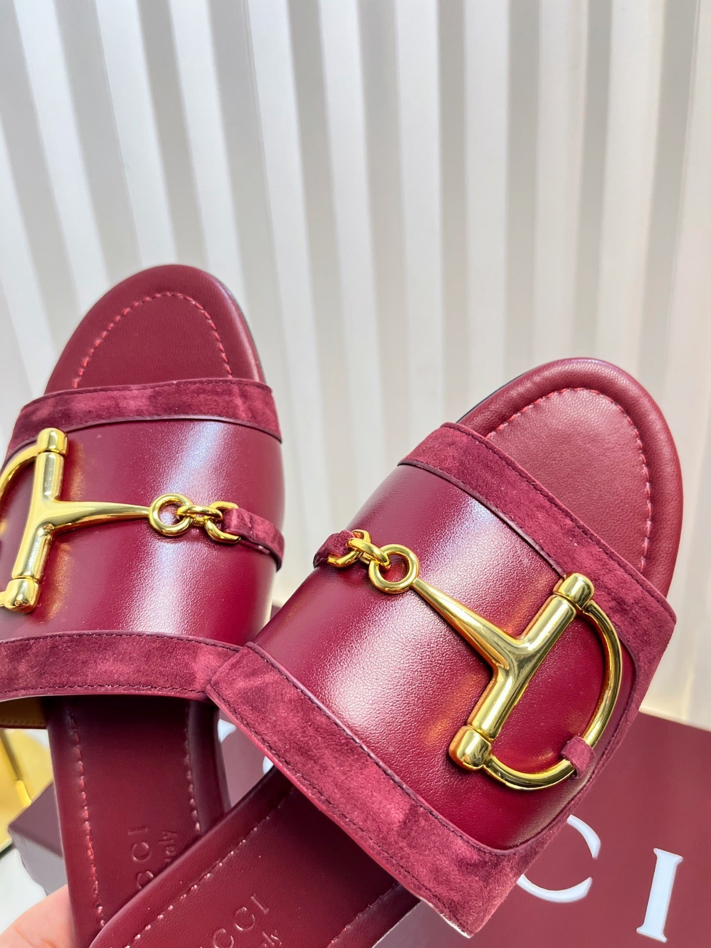 GC 25 Horsebit Sandals 10mm Red Suede Sheepskin 294649