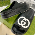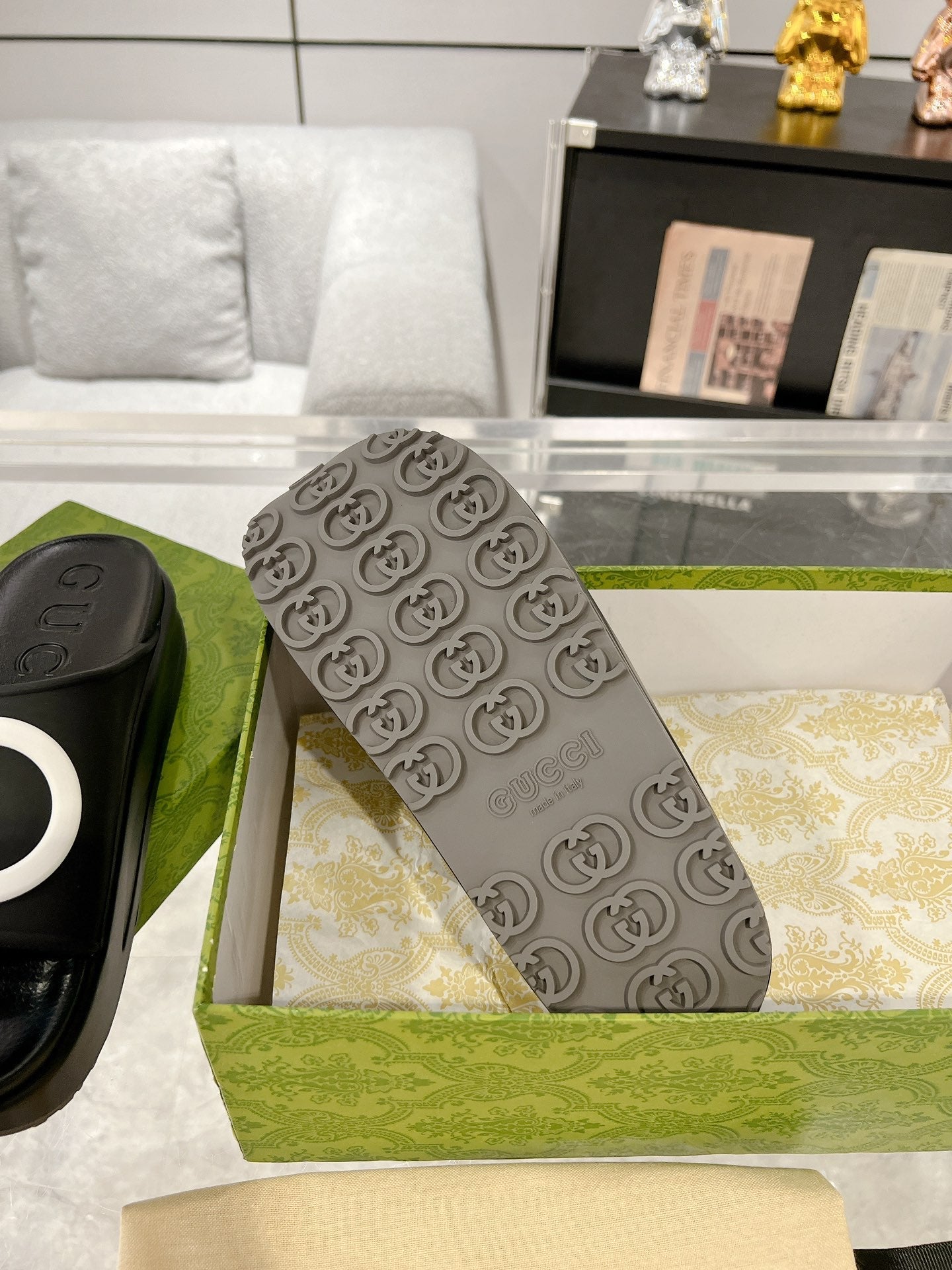GC 25 Interlocking G 50mm Slide Sandal White Black Cowhide 292399