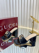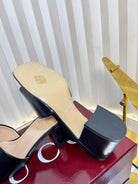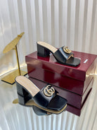 GC 25 Interlocking G Heeled Sandal Black Patent Leather 294642