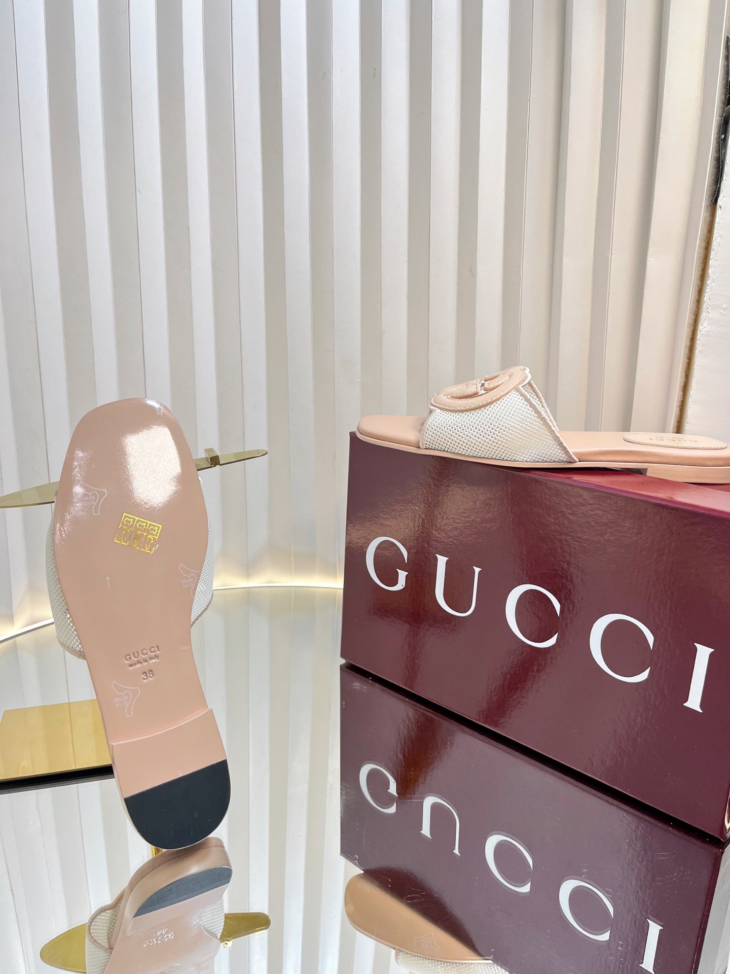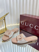 GC 25 Interlocking G Slide Sandal Nude Canvas Cowhide 294646