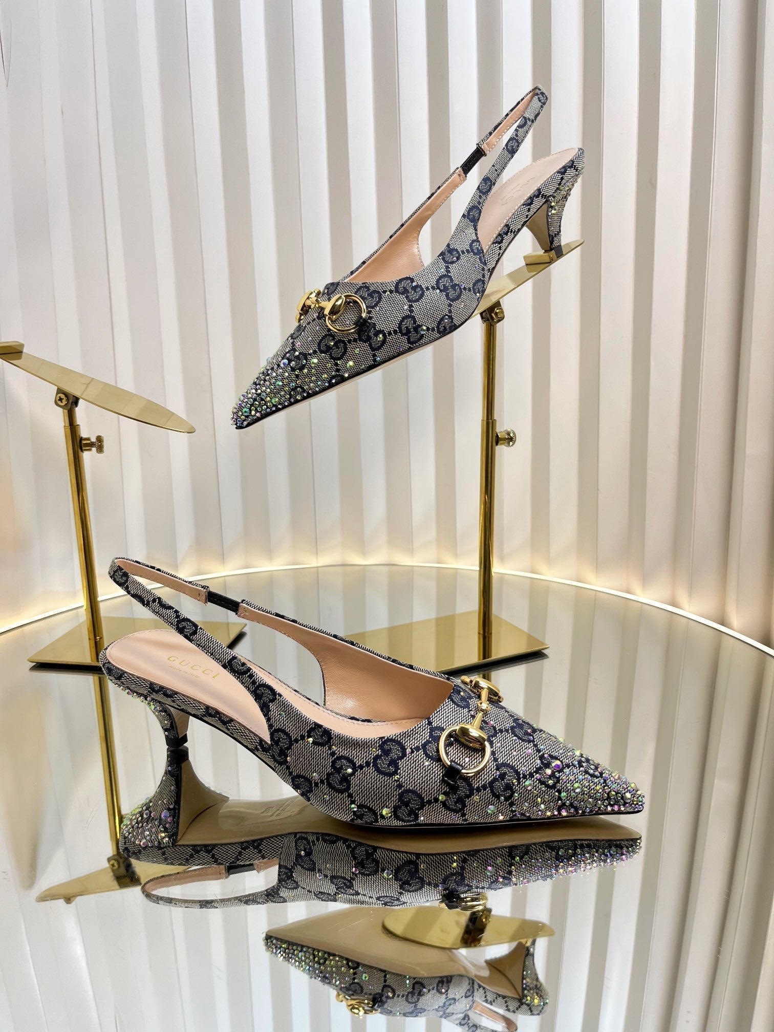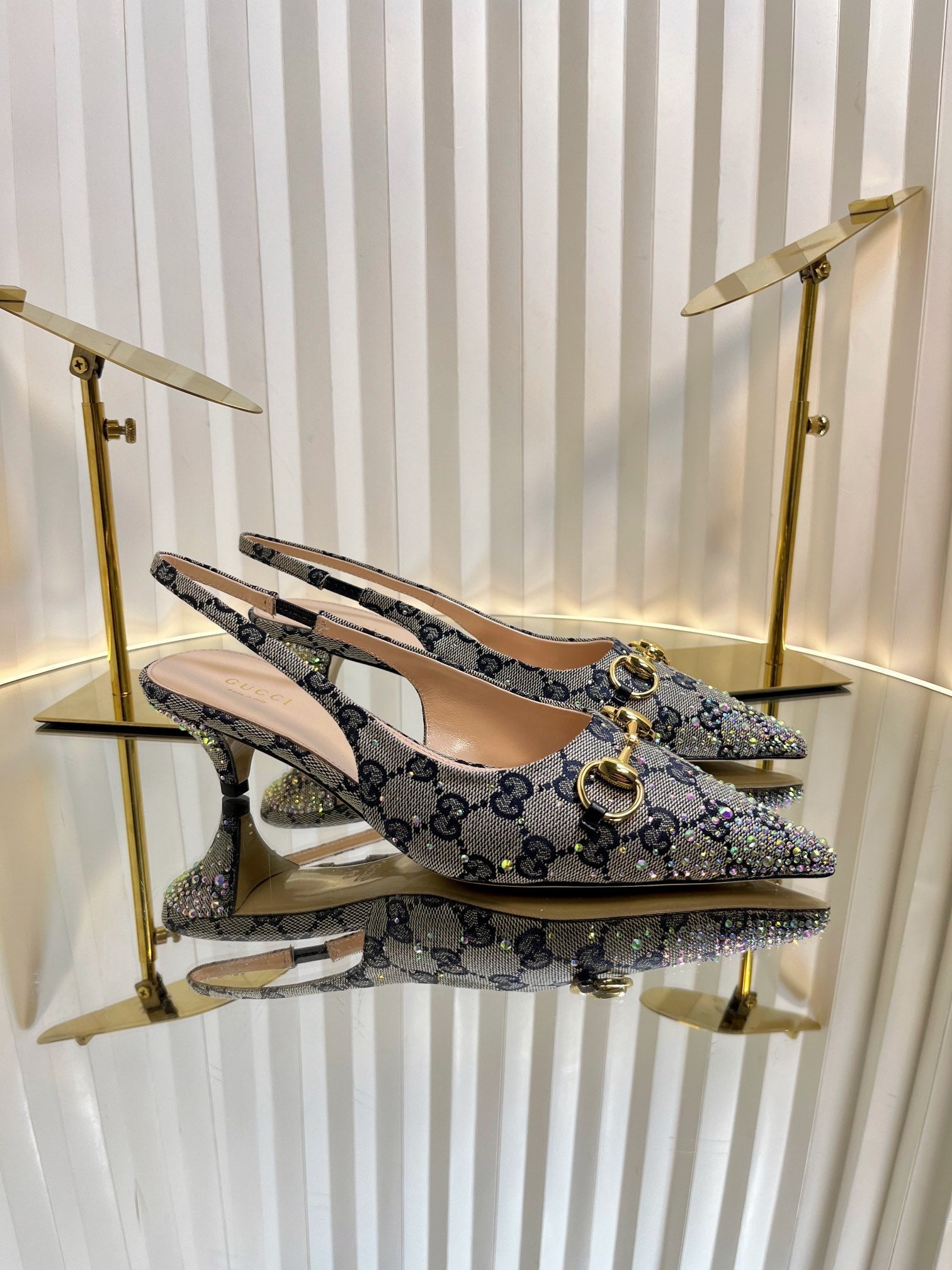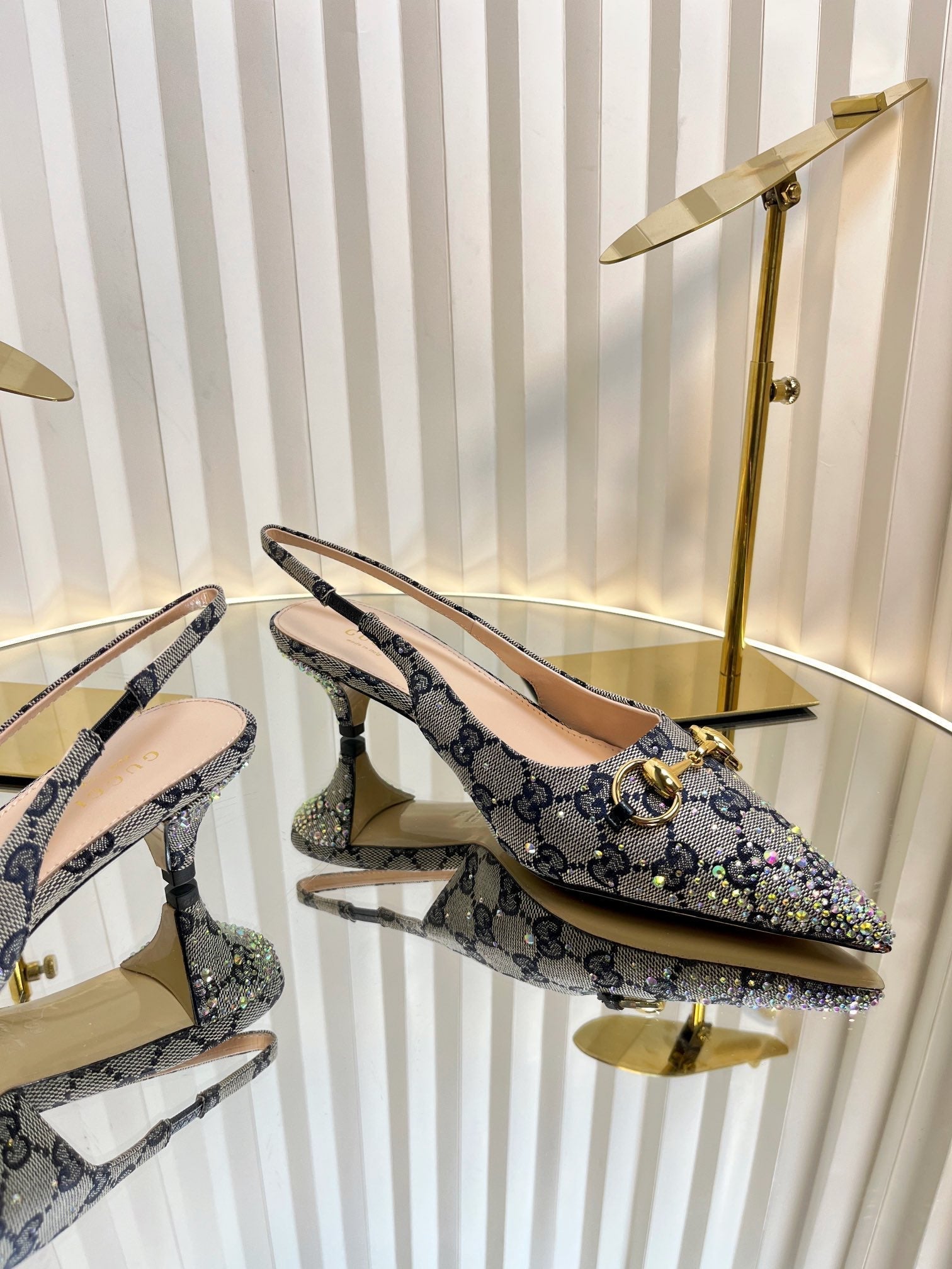 GC Crystal Horsebit Slingback 50mm Beige mix Blue Canvas lambskin 294616