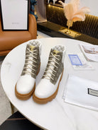 GG ankle boots white brown monogram canvas leather