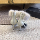 HIGH HEEL SANDAL IN WHITE POLISHED CALFSKIN AND MINK FUR
