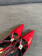 HIGH SANDAL ATTACHED GEM IN RED GLOSSY CALFSKIN
