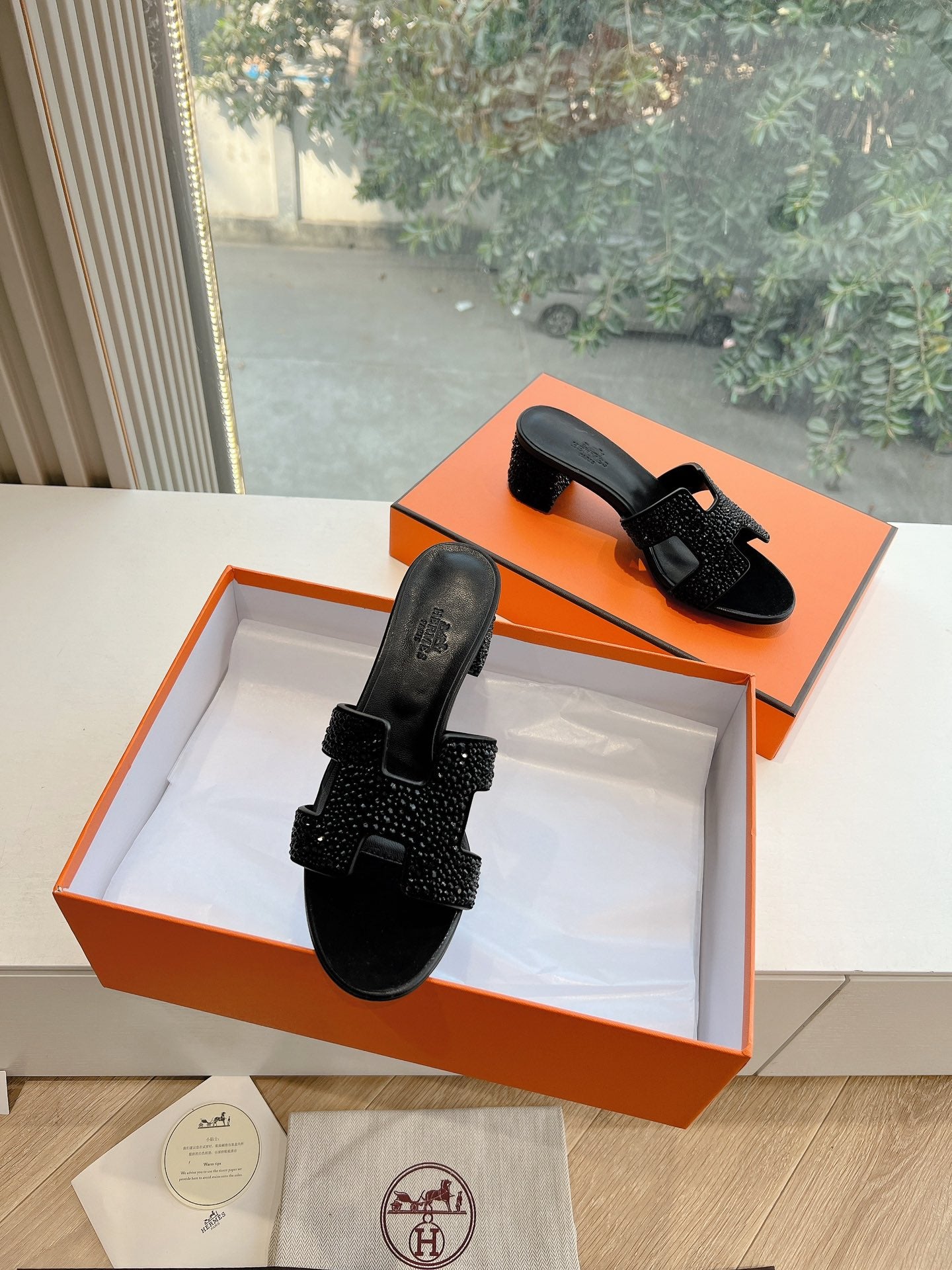 HM 25C Oasis Sandal Black Leather With Rhinestone 202835