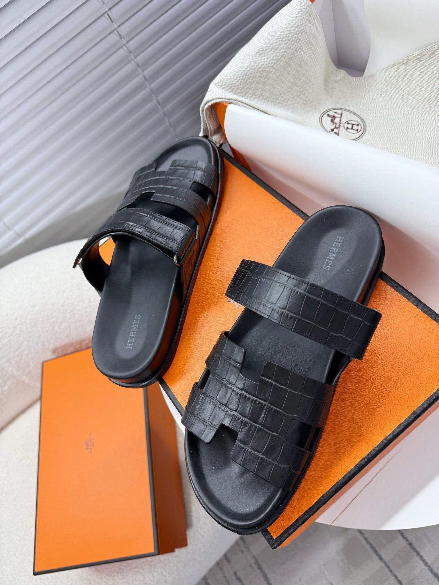 HM Chypre Sandal Black Crocodile Skin 205482